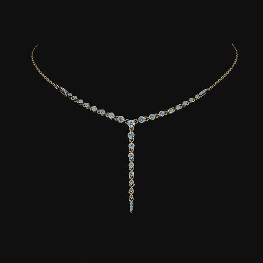 Cascade Lariat – Round Diamond Drop Necklace in 14K Gold
