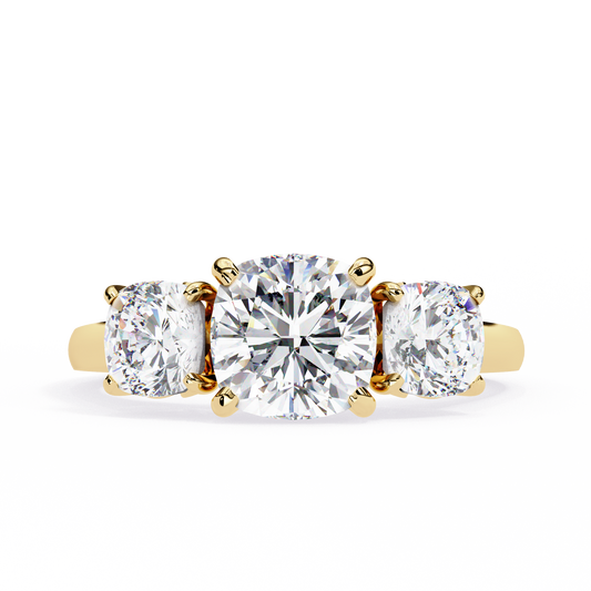 Trinity Regal – Cushion Trio Diamond Ring in 14K Gold