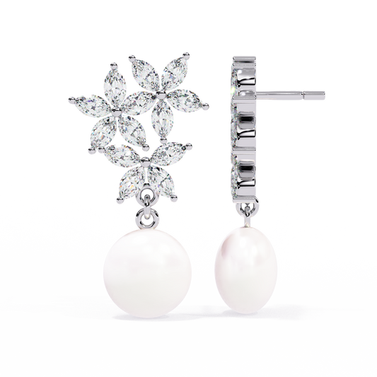 elestial Petals – Marquise, Pear & Round Diamond Drop Earrings
