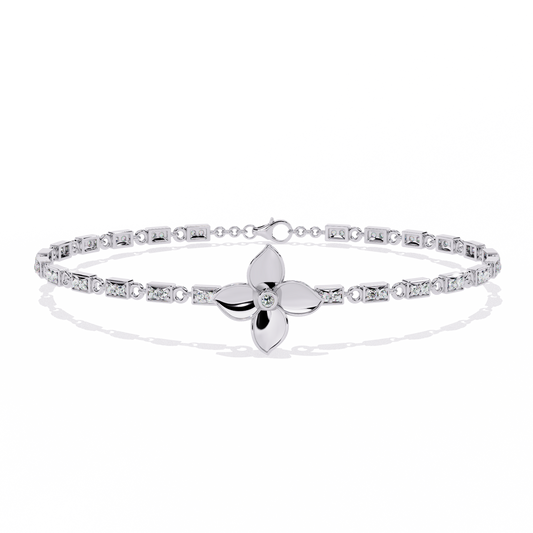 Celestial Bloom – Floral Accent Diamond Bracelet in 14K Gold