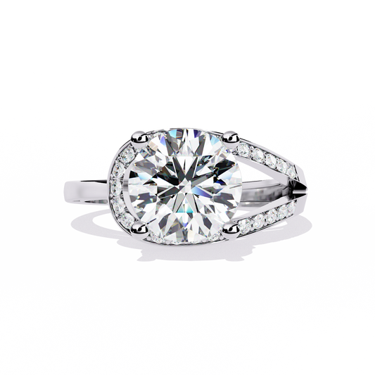 Cascade Band – Round Solitaire Diamond Ring in 14K Gold