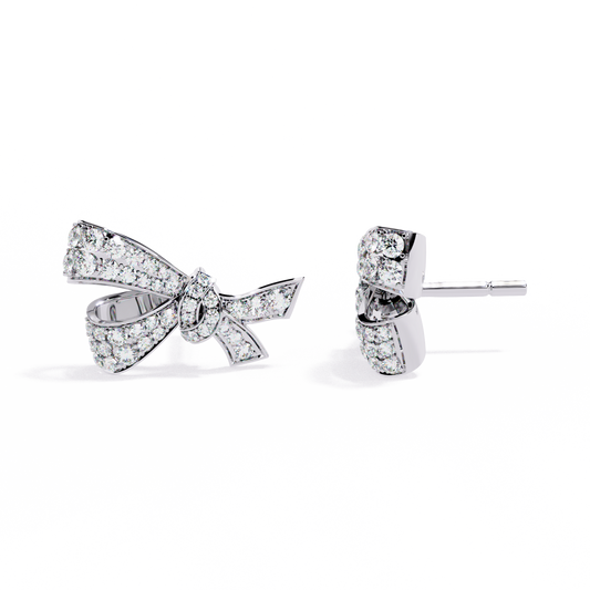 Belle Bow – Diamond Ribbon Motif Earrings in 14K Gold