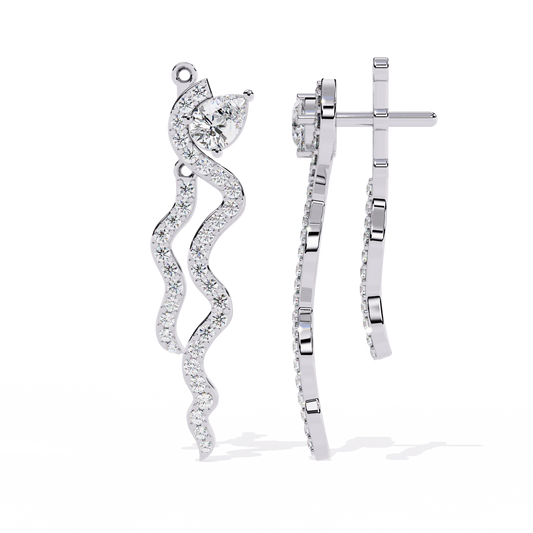 Serpentine Gleam – Pear & Pavé Diamond Drop Earrings in 14K Gold