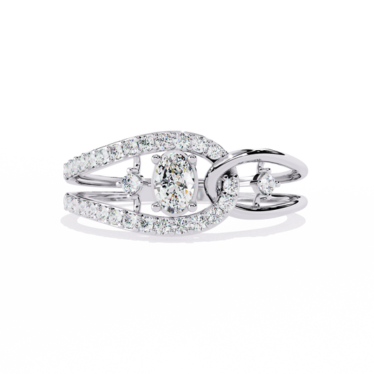 Ribbon Wrap – Oval Diamond Split Band Ring in 14K Gold
