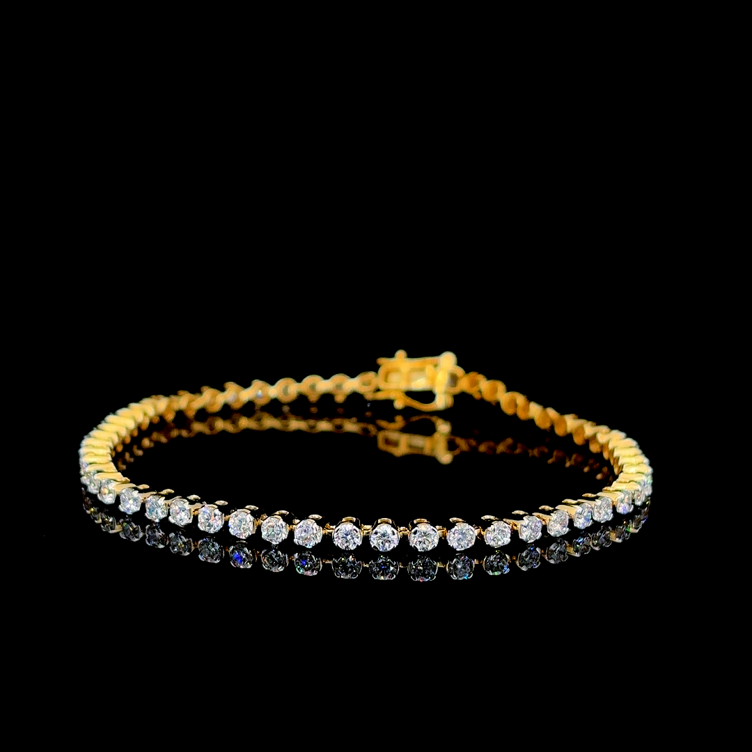 The Grace Line bracelet features 54 round lab-grown diamonds totaling 2.97 carats, set in polished 14K yellow gold. Lightweight and elegant, this bracelet brings everyday luxury with a warm golden hue and delicate brilliance.