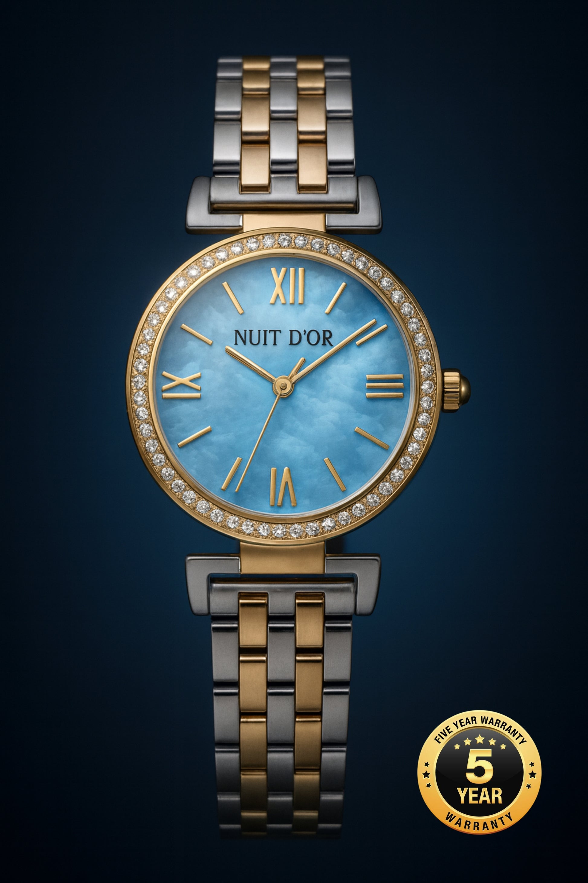3 ATM, Stainless steel case with 56 Genuine Diamonds, Stainless steel bracelet, Deployment buckle, Sapphire crystal, Genuine mother-of-pearl dial, Case diameter: 32mm