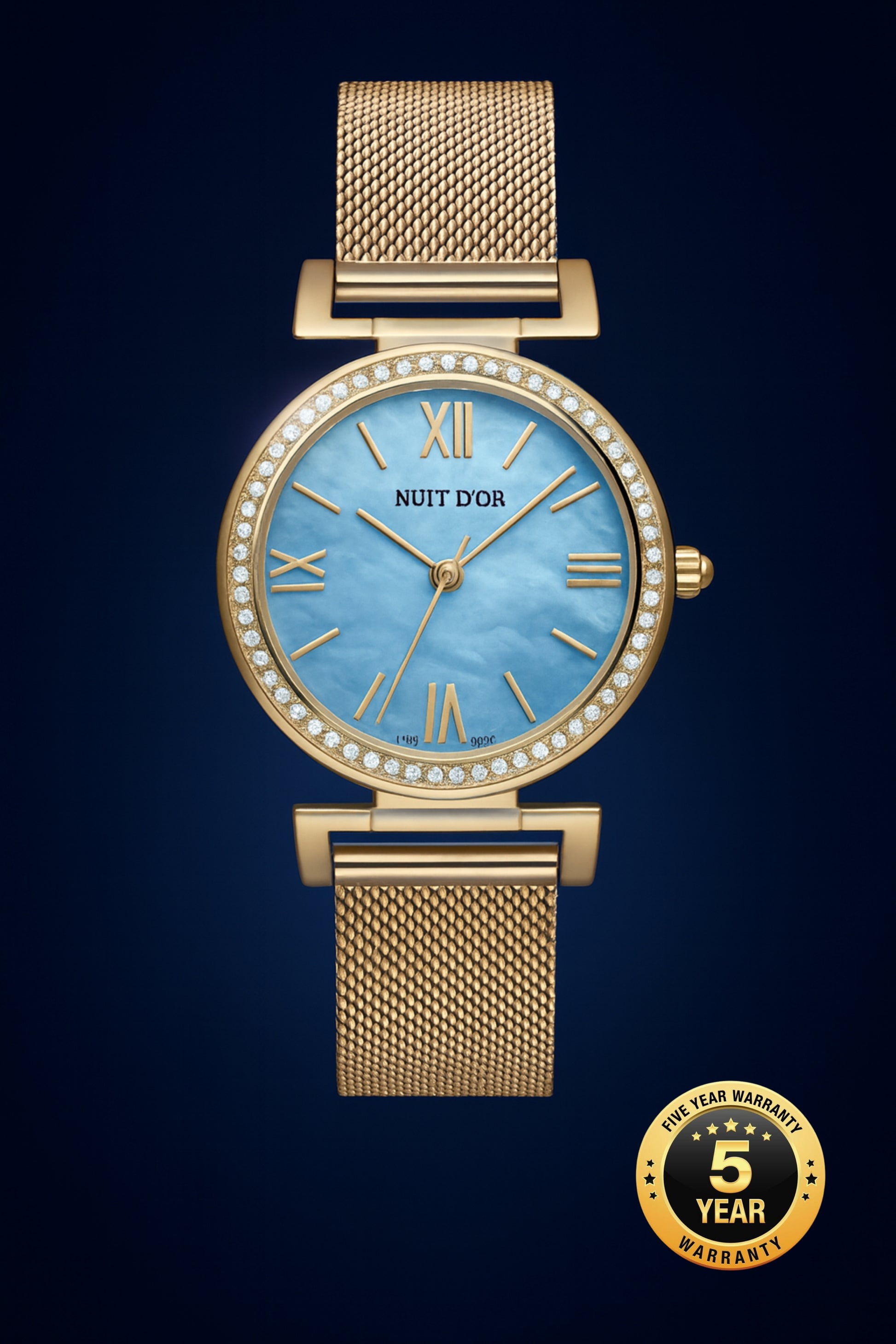 3 ATM, Stainless steel case with 56 Swarovski Crystals, Stainless steel mesh bracelet, Sapphire crystal, Genuine mother-of-pearl dial, Case diameter: 32mm