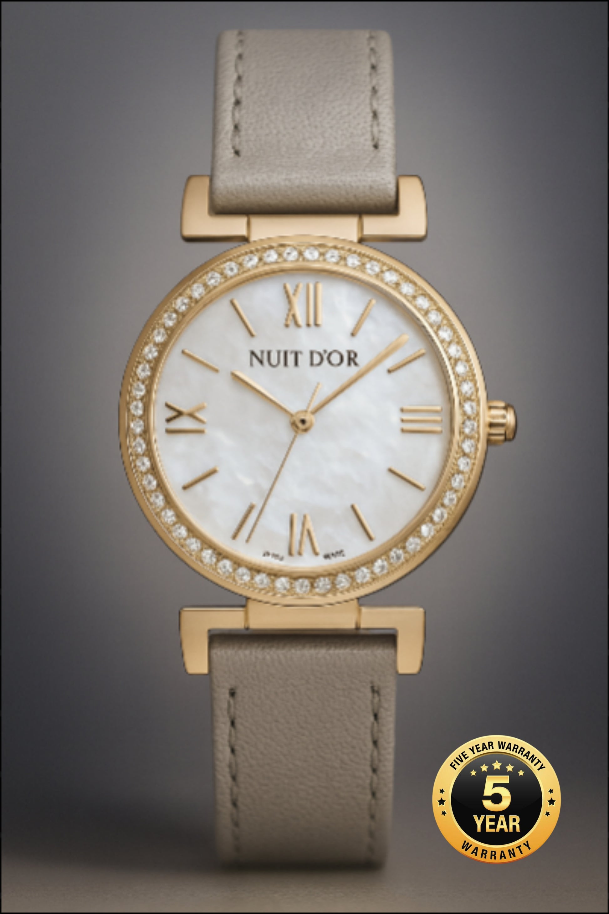 3 ATM, Stainless steel case with 56 Swarovski Crystals, 3 interchangeable genuine leather straps, Sapphire crystal, Genuine mother-of-pearl dial, Case diameter: 32mm