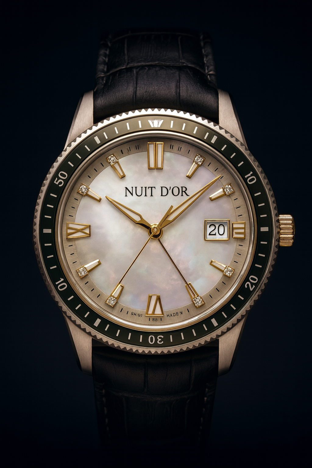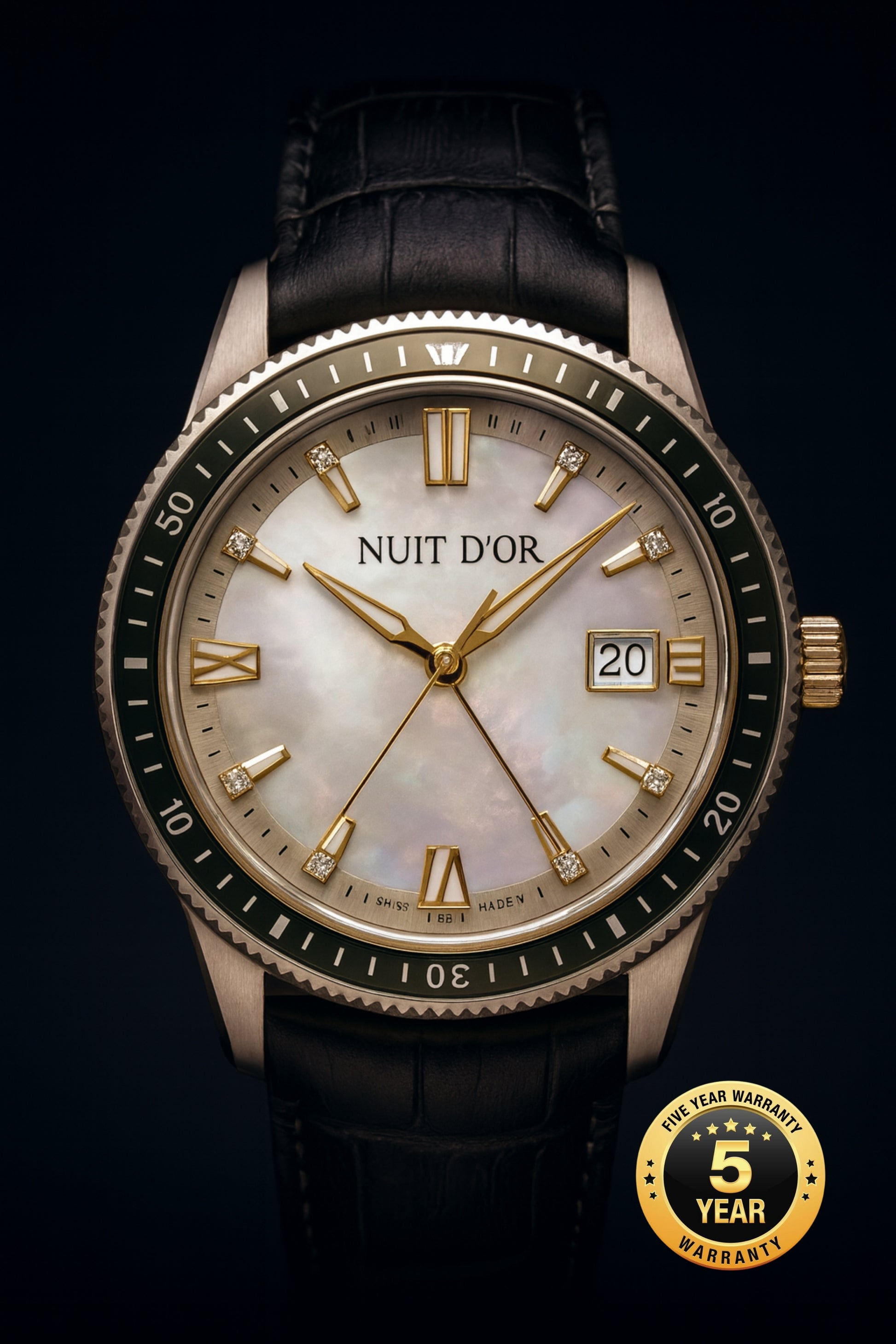 Titanium case, genuine leather strap with stainless steel deployment buckle,, 10-year lithium battery, One-directional rotating diver bezel, Screw down diver crown, Luminous dial and hands, Sapphire crystal, 10 ATM water resistant, Case diameter: 44.3 mm