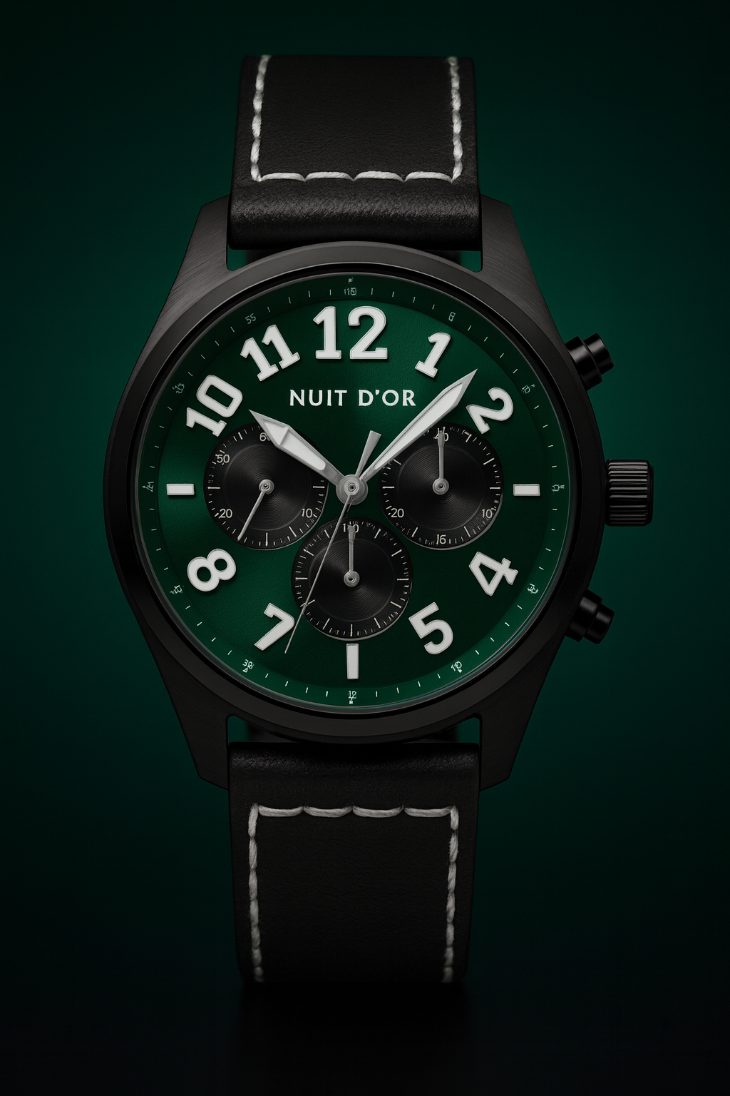 10 ATM, 6-hand Swiss chronograph with 4:00 date window, 30-minute register, Stainless steel case, Genuine leather strap with stitching, Two-tone sunray finish dial with diamond cut eyes, Luminous dial and hands, Sapphire crystal, Case diameter: 41 mm