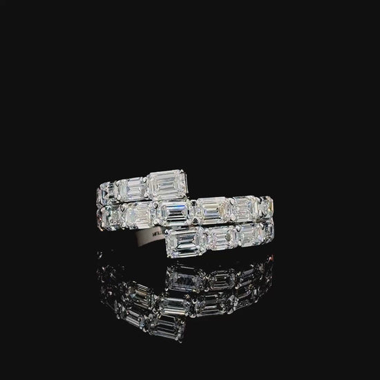 The Caden Band presents a structured lineup of 15 emerald-cut lab-grown diamonds totaling 4.03 carats. Designed in 14K white gold, this ring combines bold geometry with radiant clarity, making it a striking statement of modern sophistication.