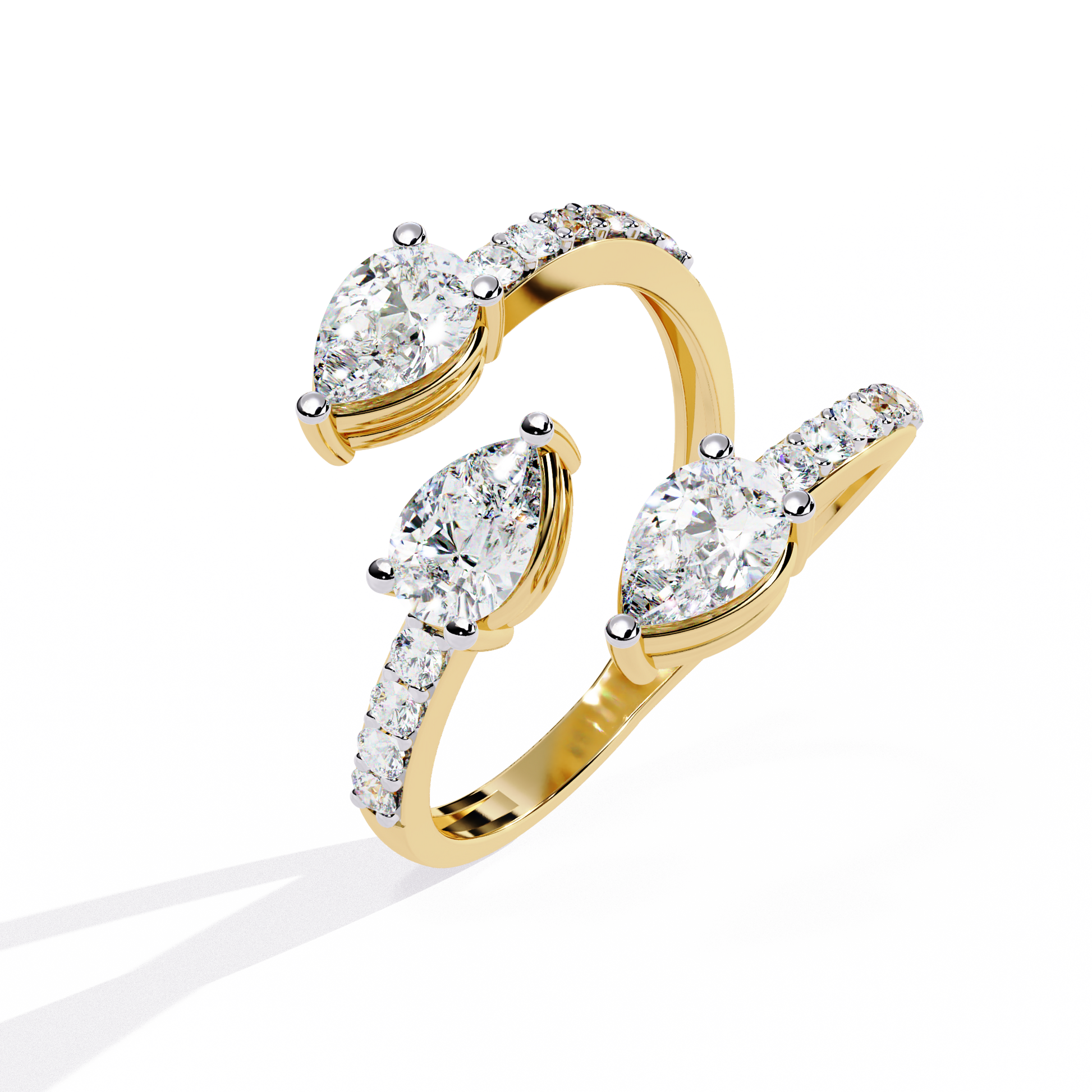 Cascade Pear – Triple Pear Diamond Open Ring with Pavé Sides in 14K Gold