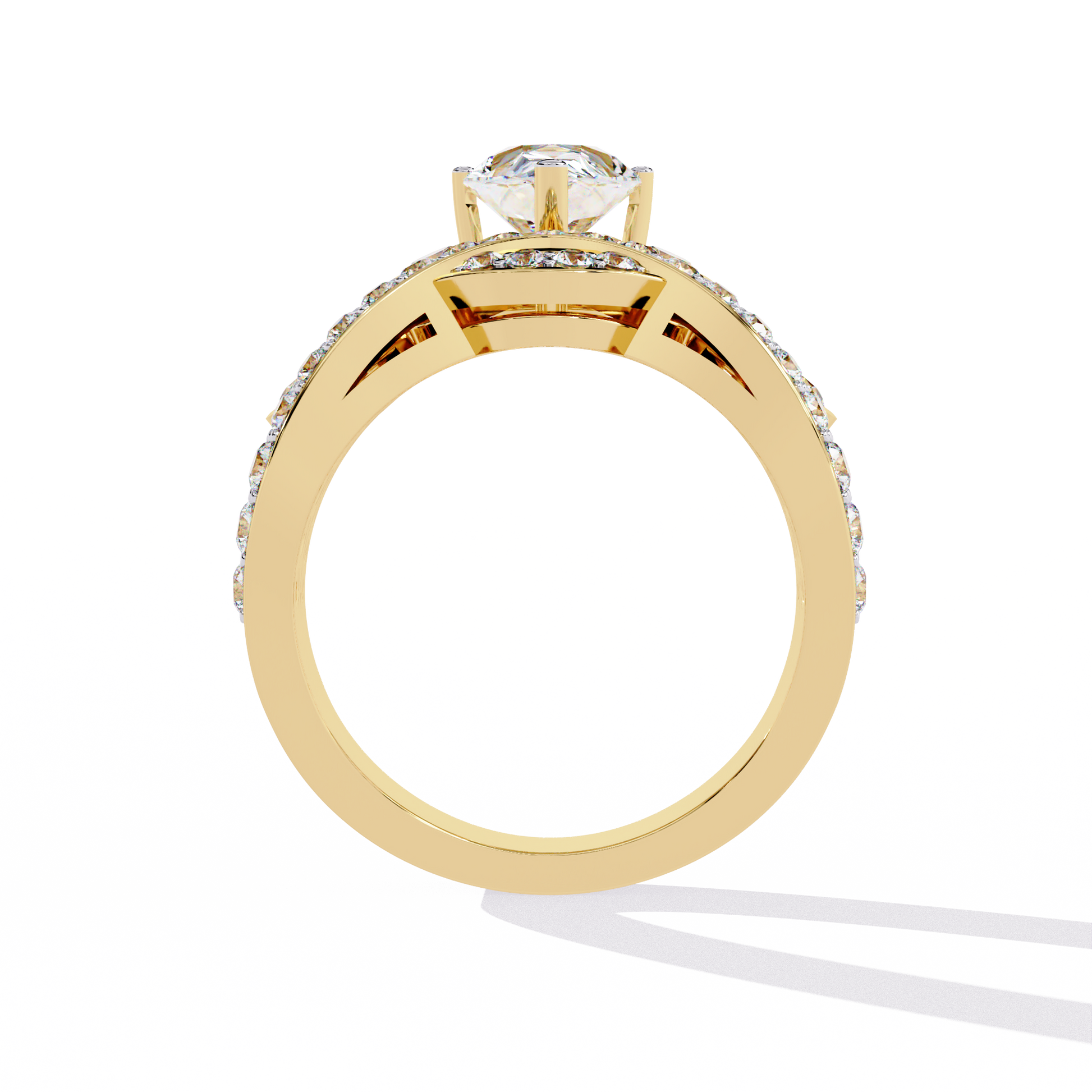 Celestial Crown – Pear Diamond Ring with Regal Scrollwork in 14K Gold