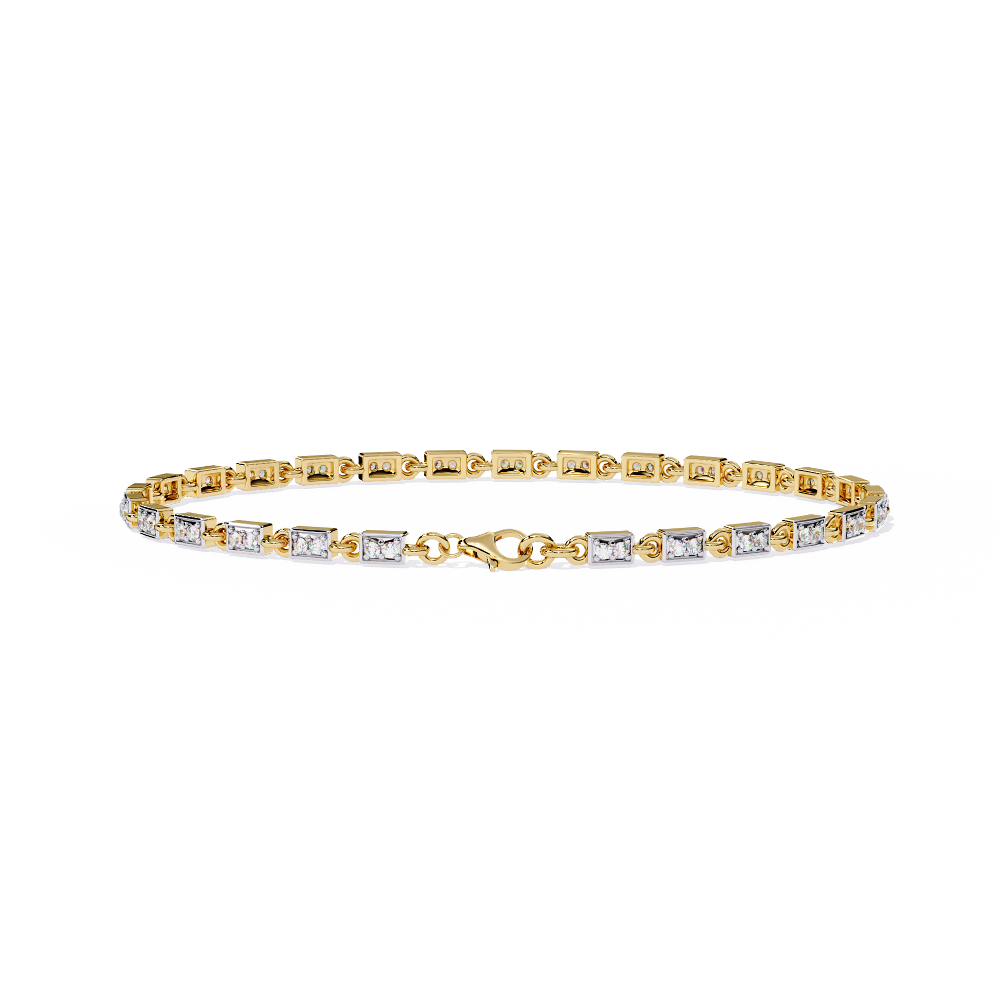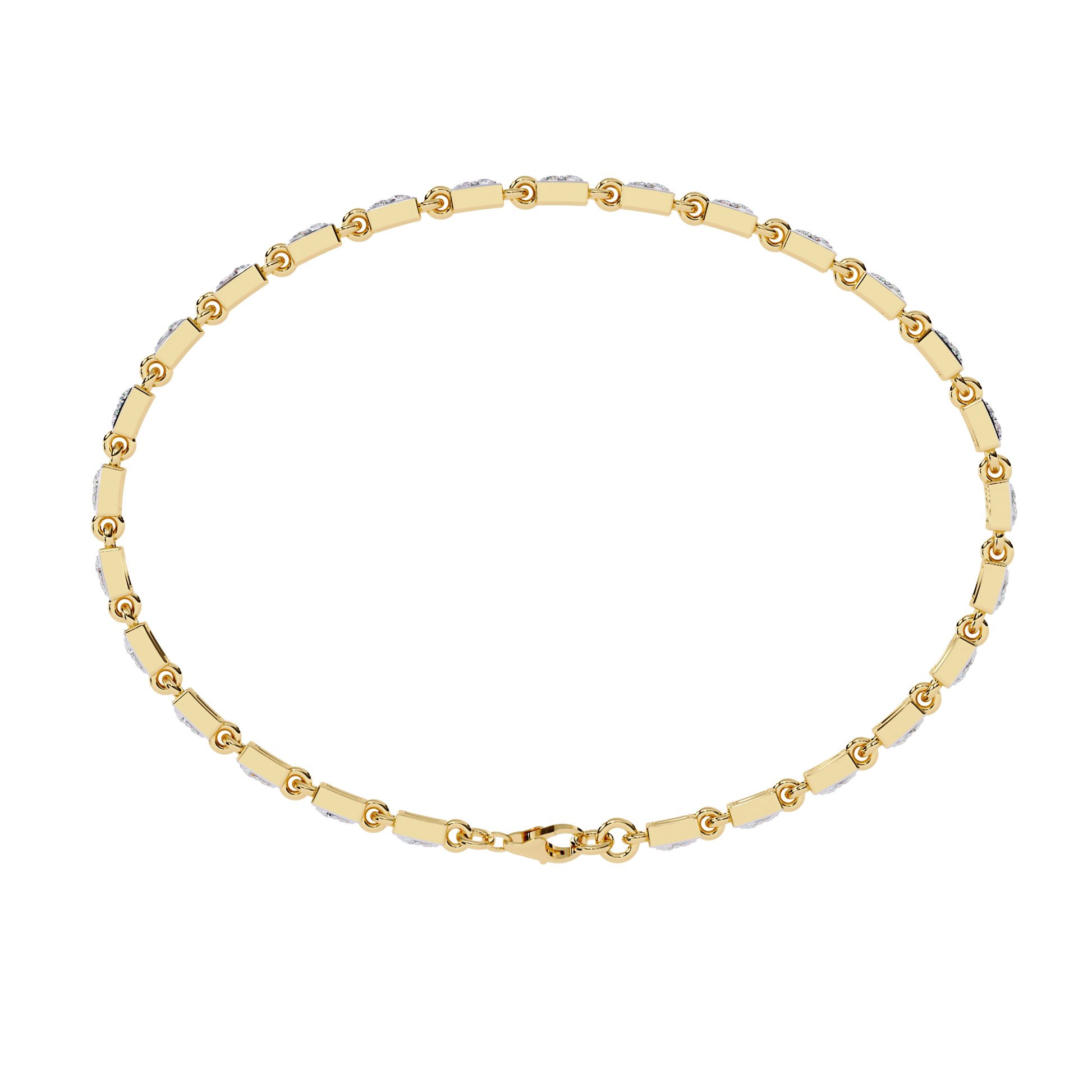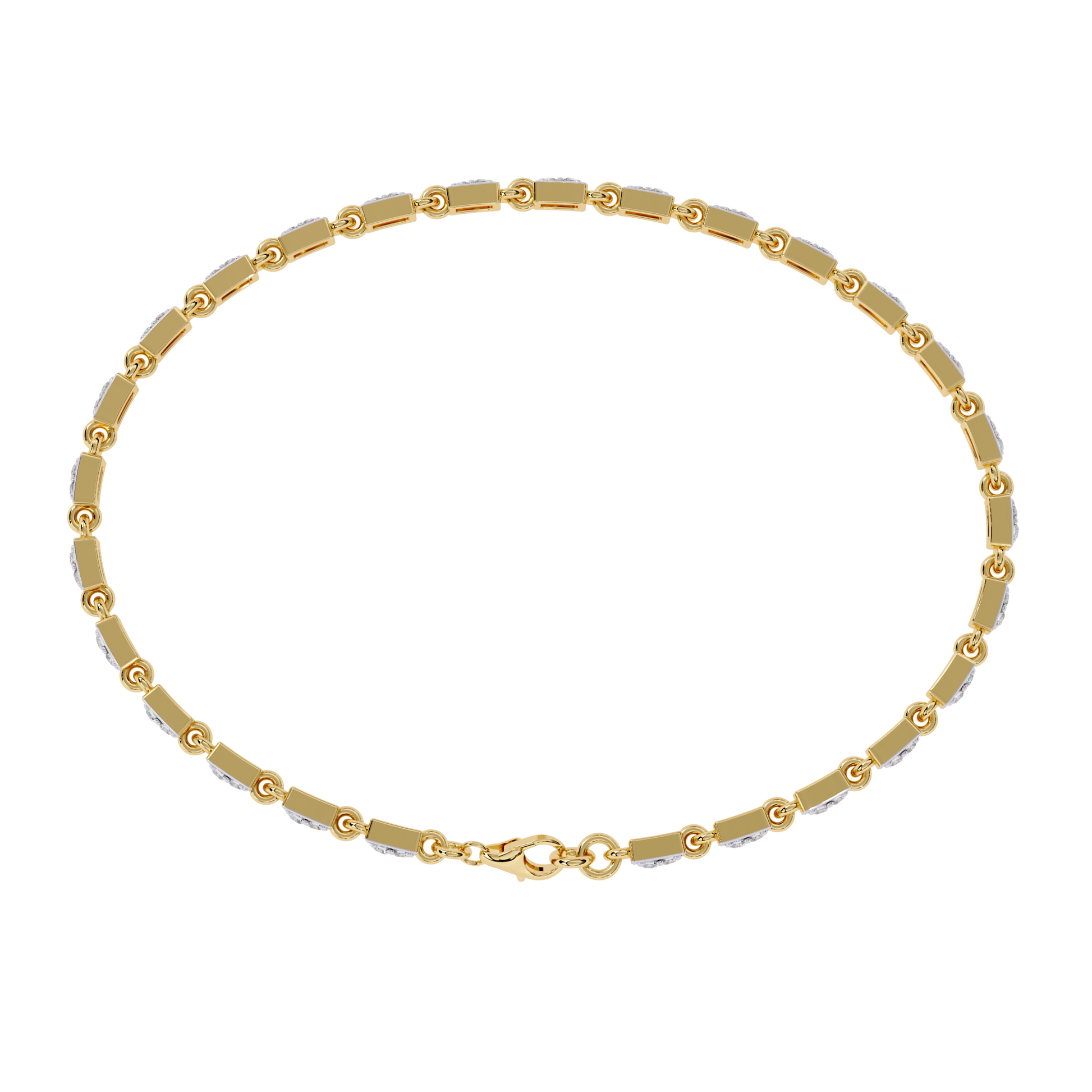 The Dainty Gleam bracelet is a refined essential, crafted with 56 round lab-grown diamonds set along a slender gold frame. Measuring just 2.2 mm in width, this sleek design offers quiet sparkle and sophistication, perfect for everyday elegance or stacking. A delicate showcase of grown brilliance with fine detailing in 14K gold.