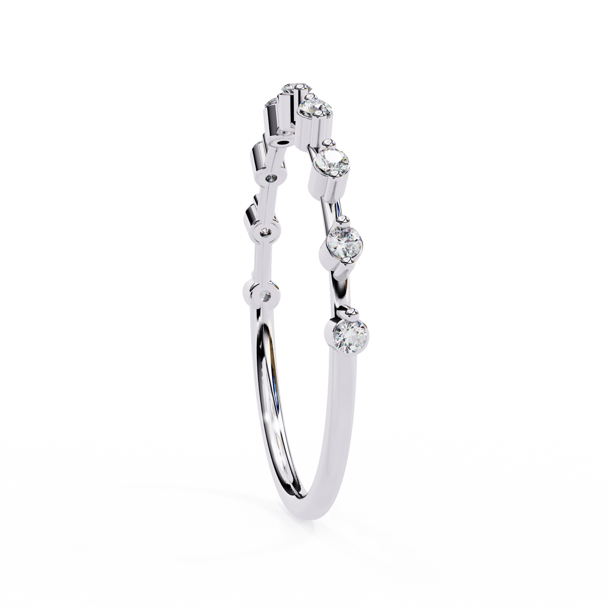 The Delicate Drop ring is a subtle beauty featuring a soft taper ending in a single round lab-grown diamond cluster. Minimal and graceful, this slim silhouette is ideal for stacking or worn alone to highlight its quiet sparkle and refined presence.