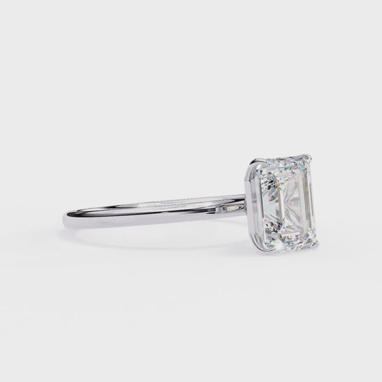 The Emerald Ascent ring showcases an emerald-cut lab-grown diamond raised on a sleek, sculpted band. Its bold elevation and mirror-like facets create a crisp, commanding look—perfect for those who favor clean geometry and architectural grace.