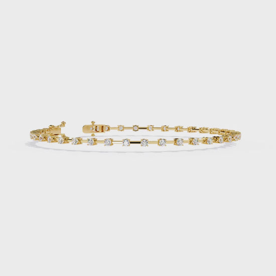 A modern expression of symmetry, the Baguette Link bracelet features neatly spaced round lab-grown diamonds framed in slim rectangular gold bezels. Each stone is carefully secured in a structured bar-link formation, creating a clean silhouette with rhythmic brilliance. Ideal for stacking or wearing solo, this 7.5-inch bracelet offers understated elegance with precise craftsmanship.