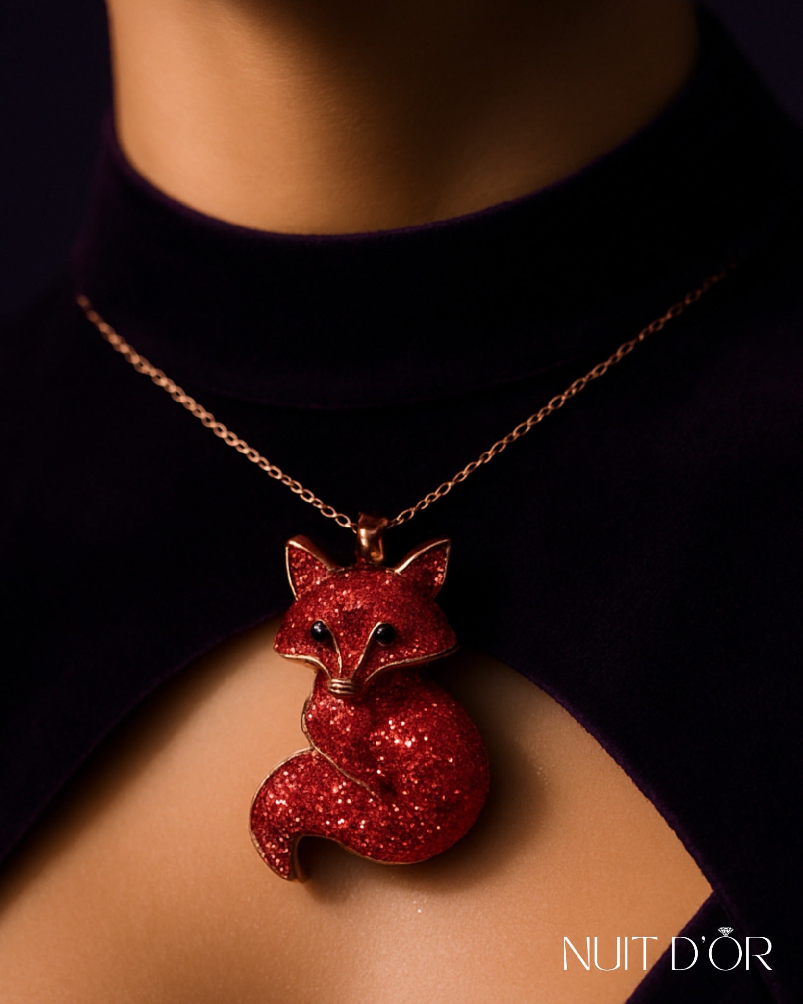 This fiery red fox pendant captures the spirit of mystery and allure, crafted to turn every glance into admiration.