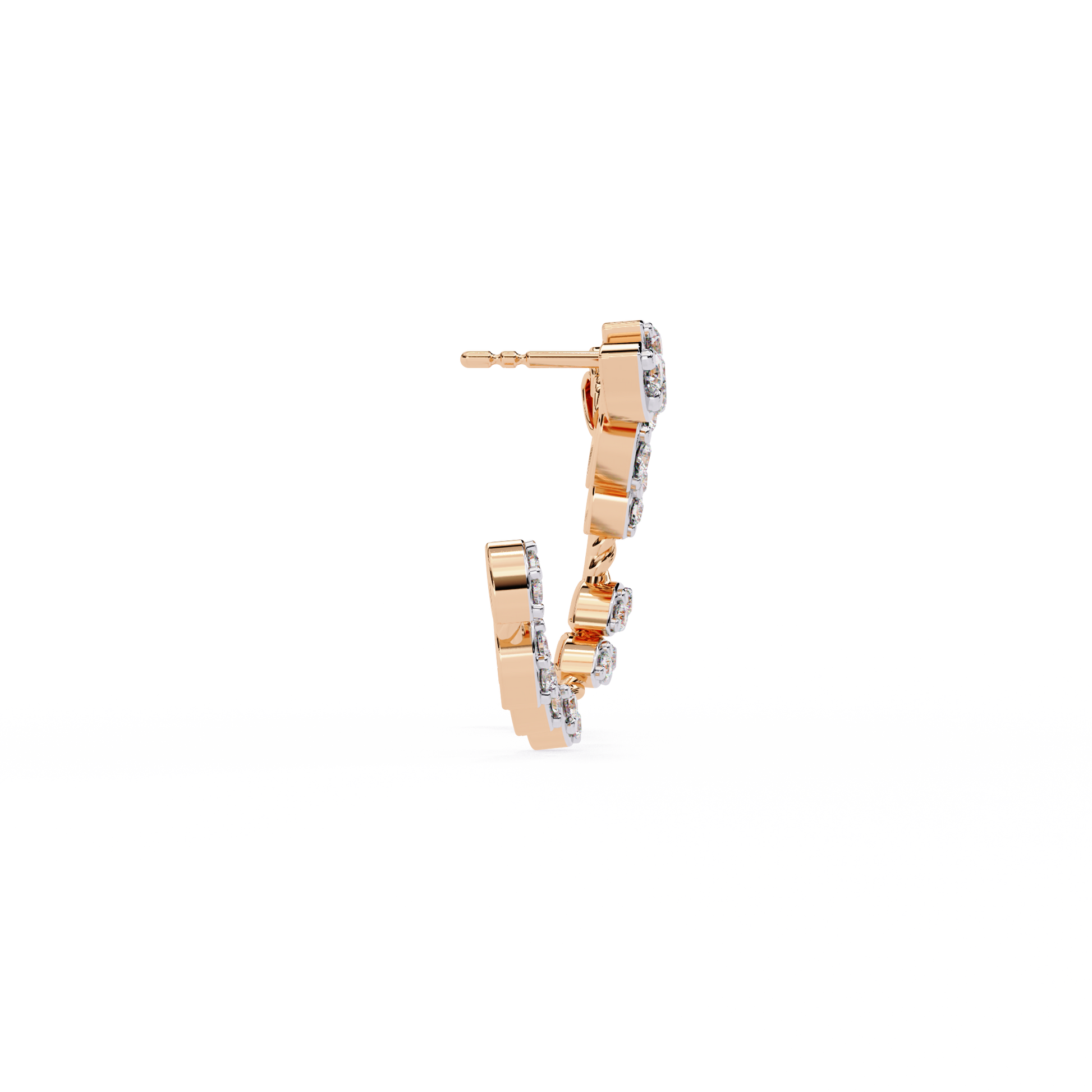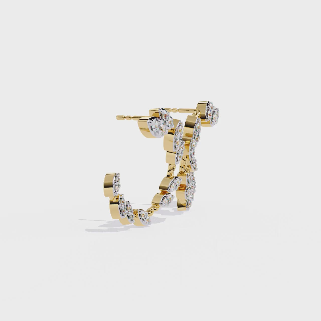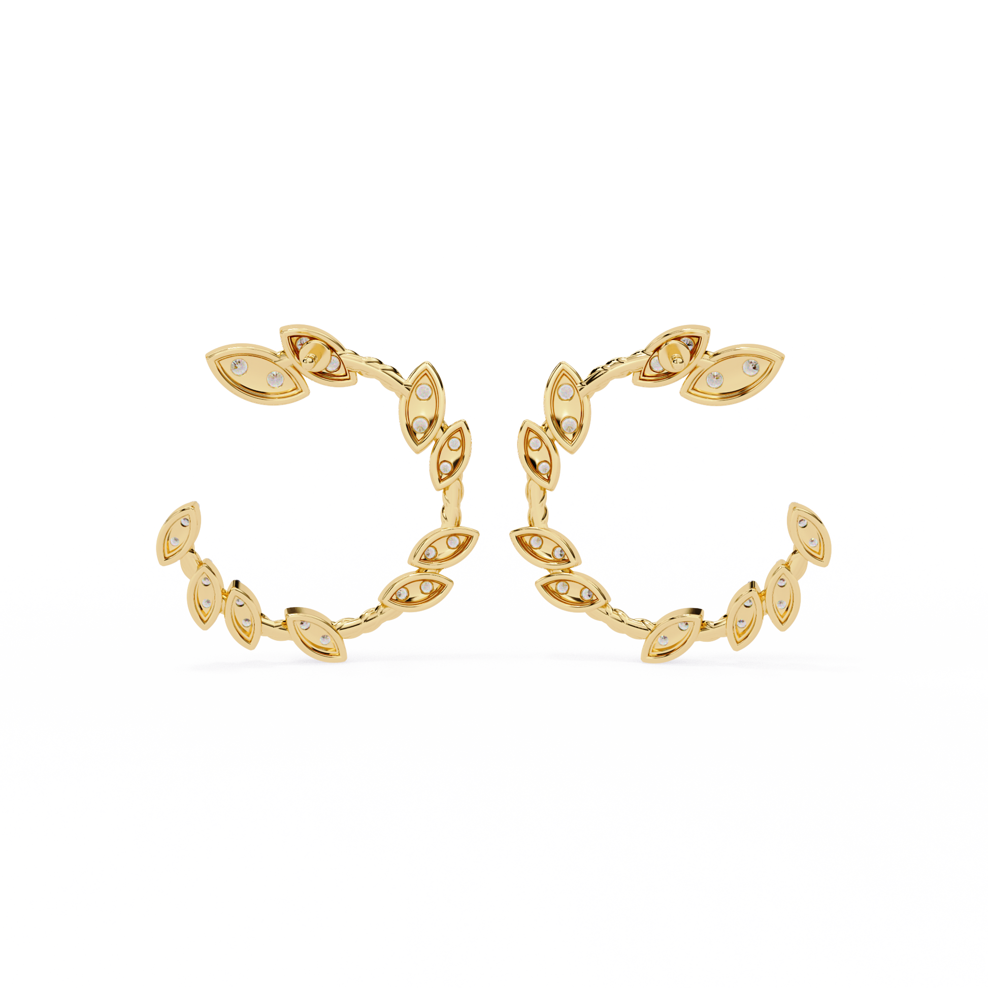 Delicately twined like a golden garland, the Floral Vine earrings feature alternating marquise-shaped diamond clusters in a graceful open-hoop silhouette. Each diamond is carefully prong-set into sculpted gold leaves, creating a soft, botanical rhythm around the ear. Perfect for day-to-evening wear, this design is a celebration of natural elegance and fine artistry.