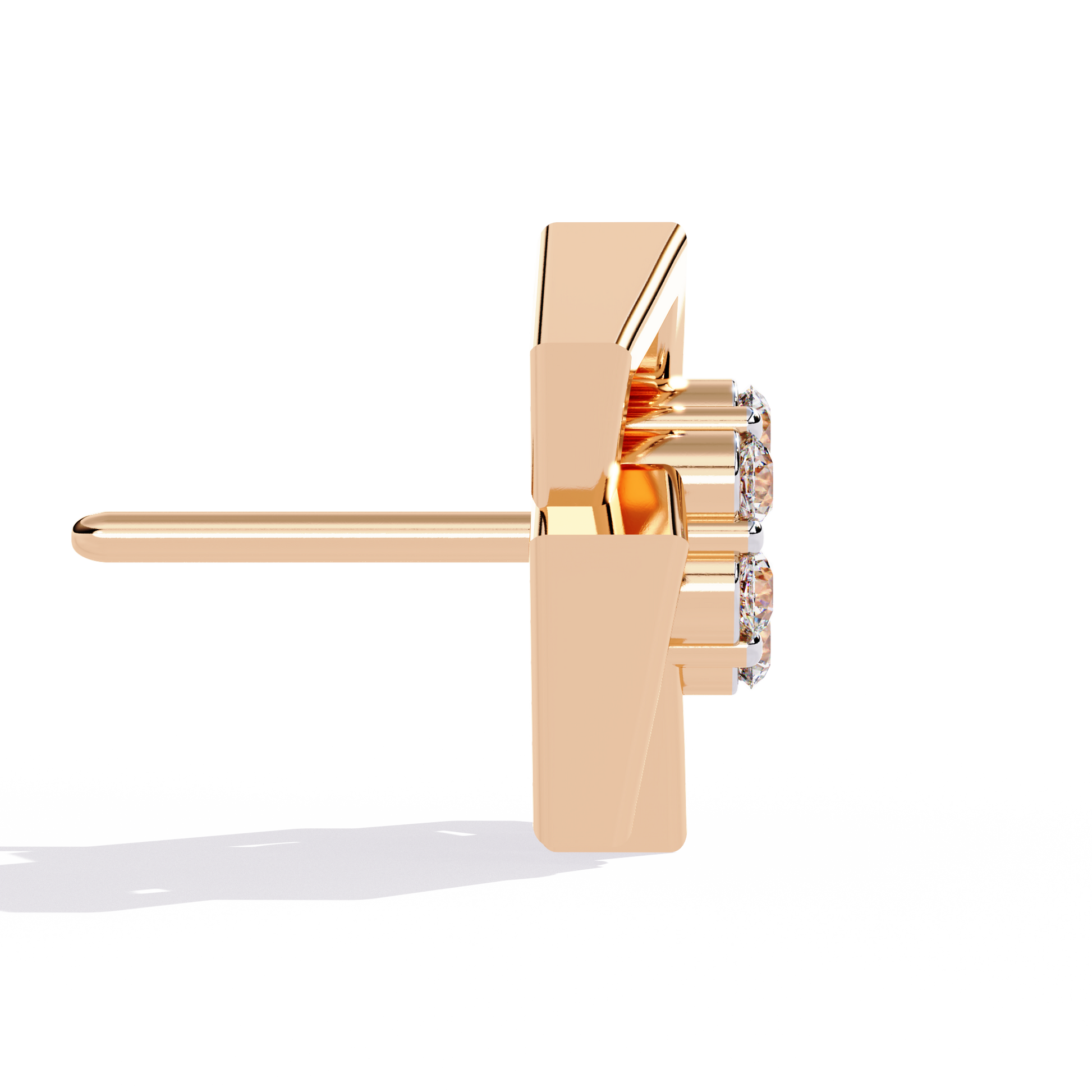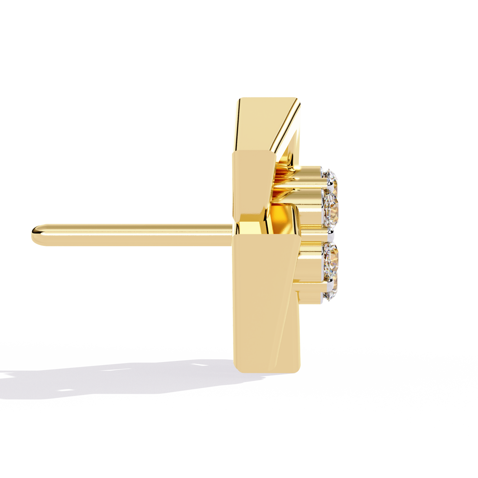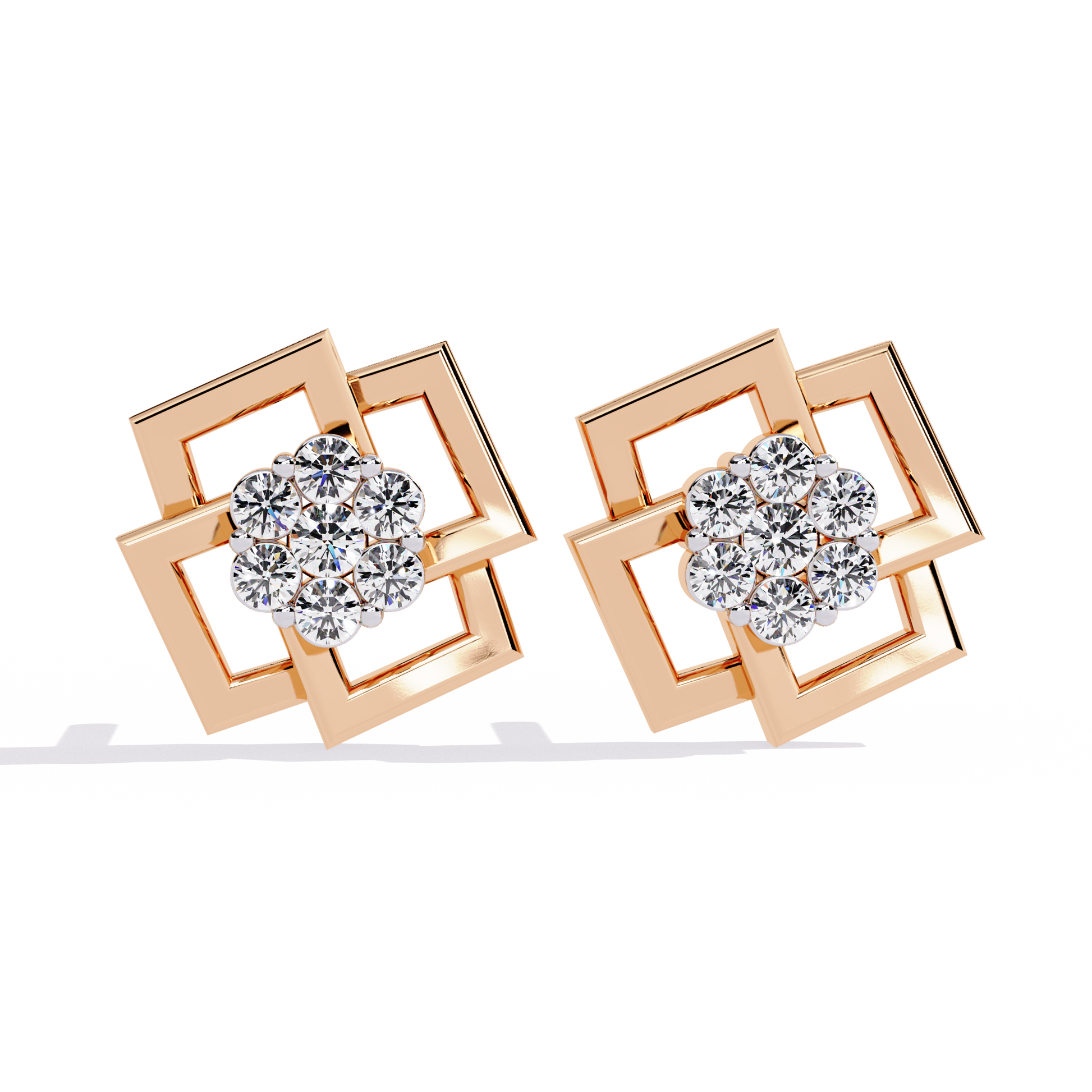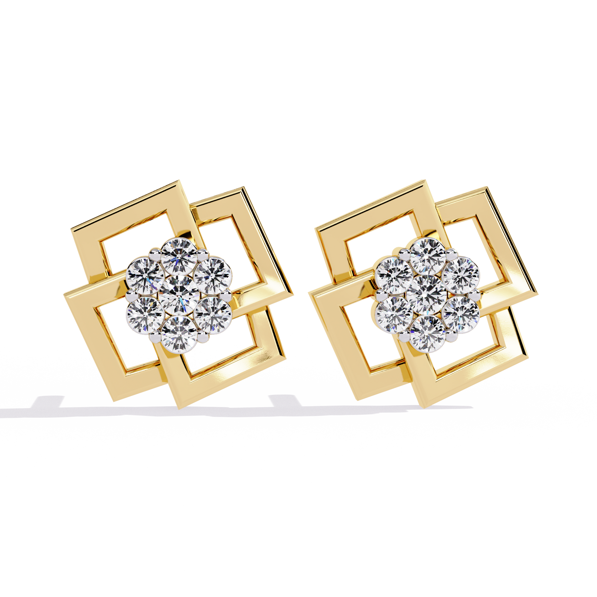 The Geo Bloom earrings merge geometric precision with floral elegance. Crafted in 14K gold, these 9 mm studs feature a structured square framework centered with a radiant cluster of 14 round lab-grown diamonds. The contrast between the sharp lines and the soft sparkle creates a contemporary yet timeless accessory ideal for both minimal and bold looks.