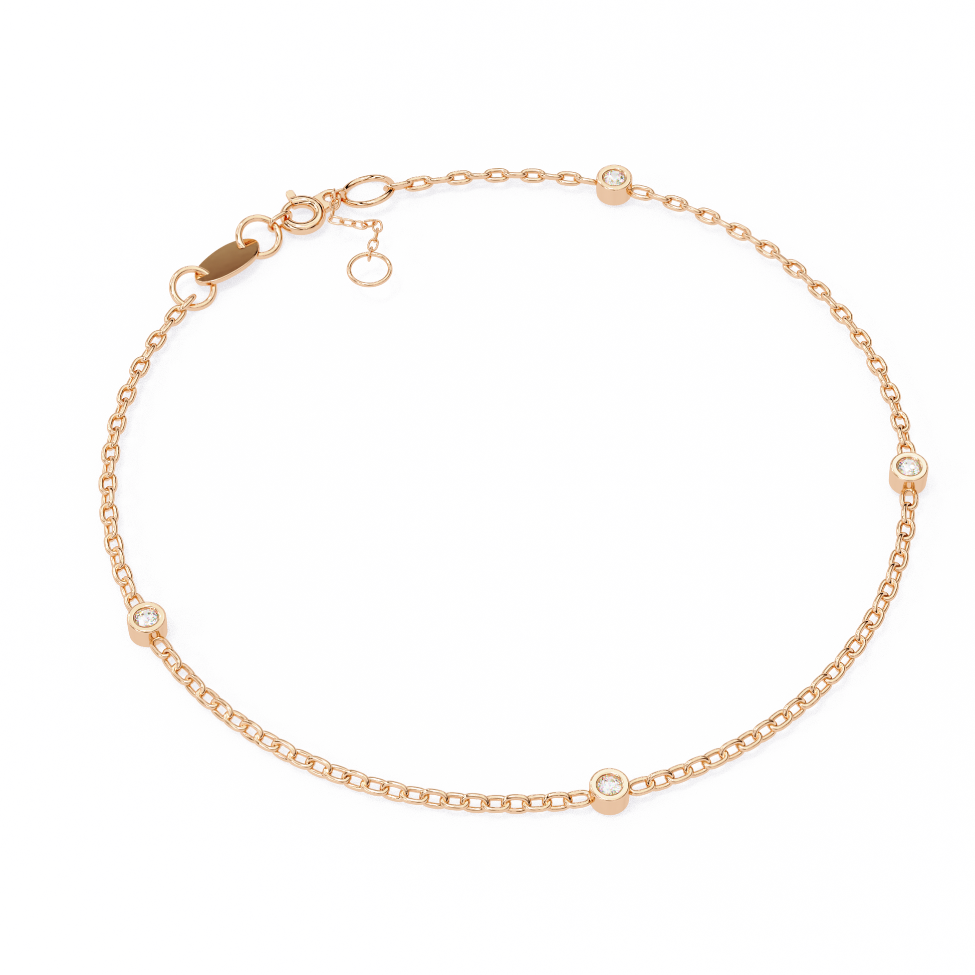 An elegant expression of modern simplicity, this chain bracelet is crafted in 14K gold and accented with four bezel-set round lab-grown diamonds. Each diamond is carefully selected in D-E-F color and VVS-VS clarity, offering a refined brilliance along the delicate gold chain. A timeless piece perfect for layering or wearing solo.