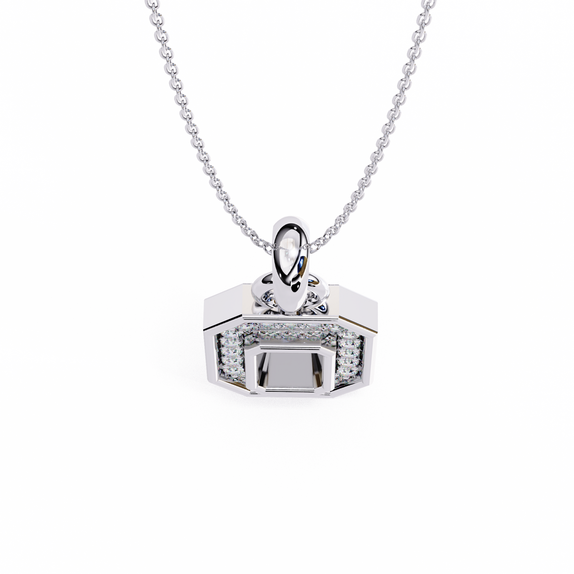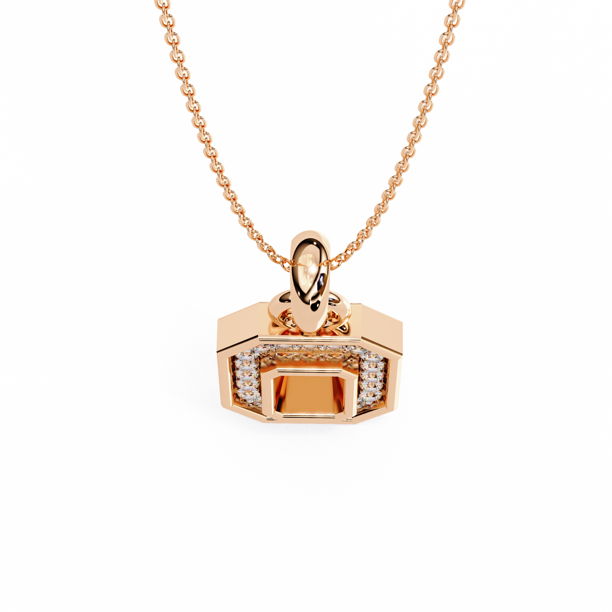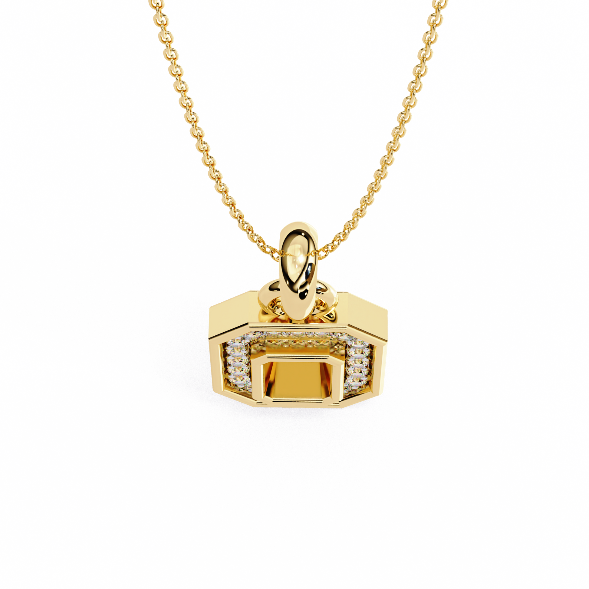The Golden Loop necklace features a series of round lab-grown diamonds set within alternating gold links. Its unique blend of sparkle and structure makes this piece a versatile essential—balancing minimalist form with fine jewelry detail.