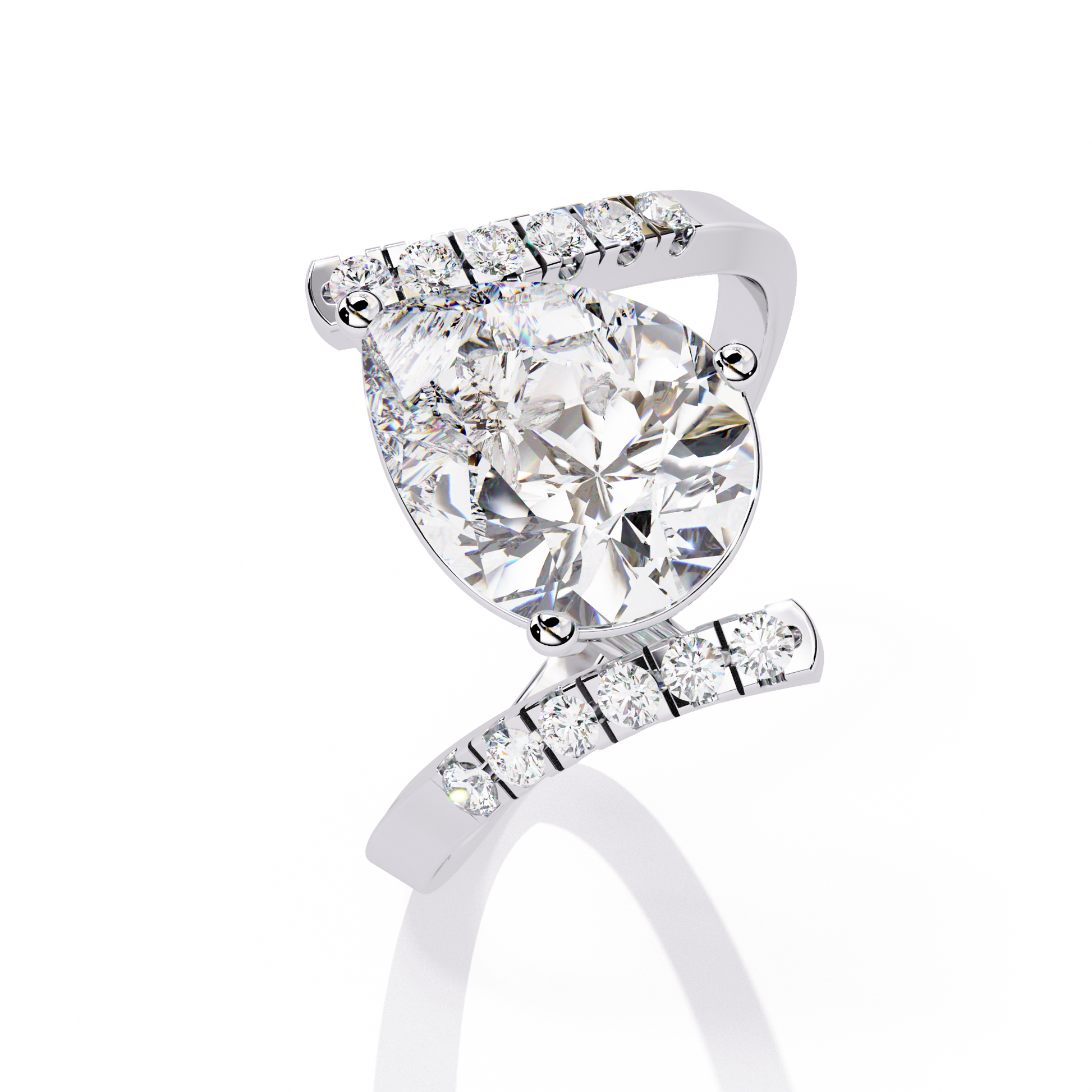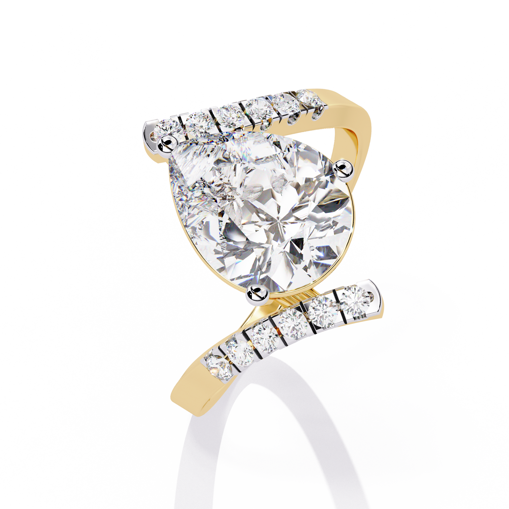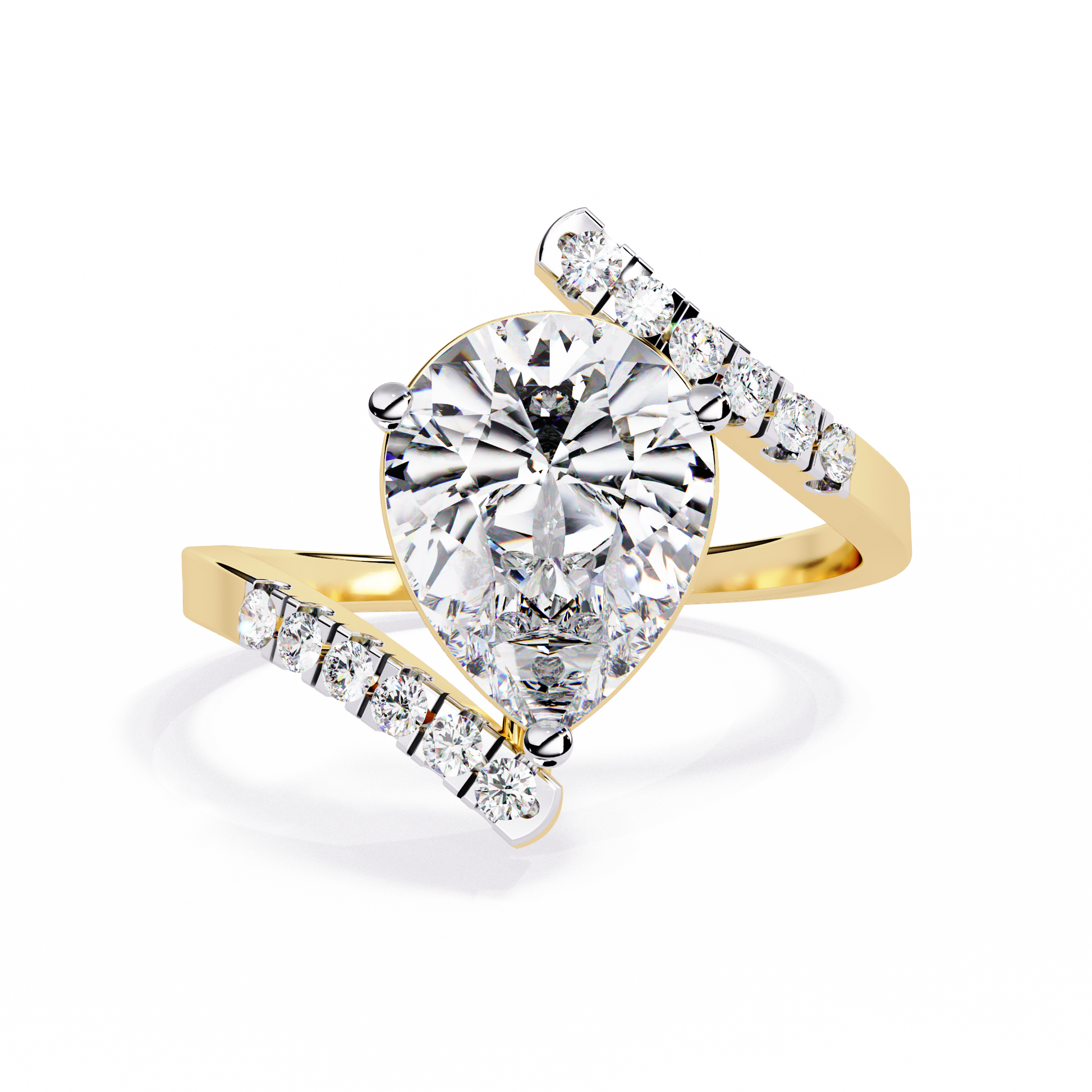 Specifications: • Style Number: RING136 • Gold Purity: 14K Gold (Yellow, White, or Rose) • Gold Weight: 2.9 grams (14K), 3.3 grams (18K) • Diamond Type: Lab-grown Diamond • Diamond Shapes: Pear, Round • Diamond Count: 13 stones • Center: 1 pc (2.50 ct) • Accent: 12 pcs (0.22 ct total) • Total Diamond Weight: 2.72 carats • Diamond Color: D-E-F • Diamond Clarity: VVS-VS