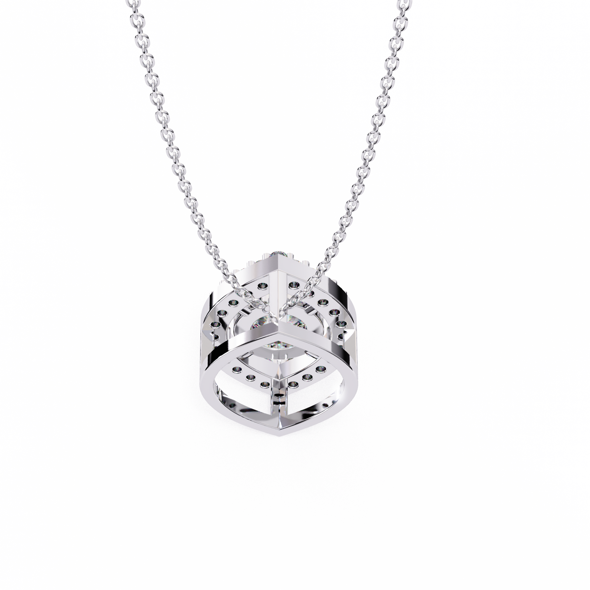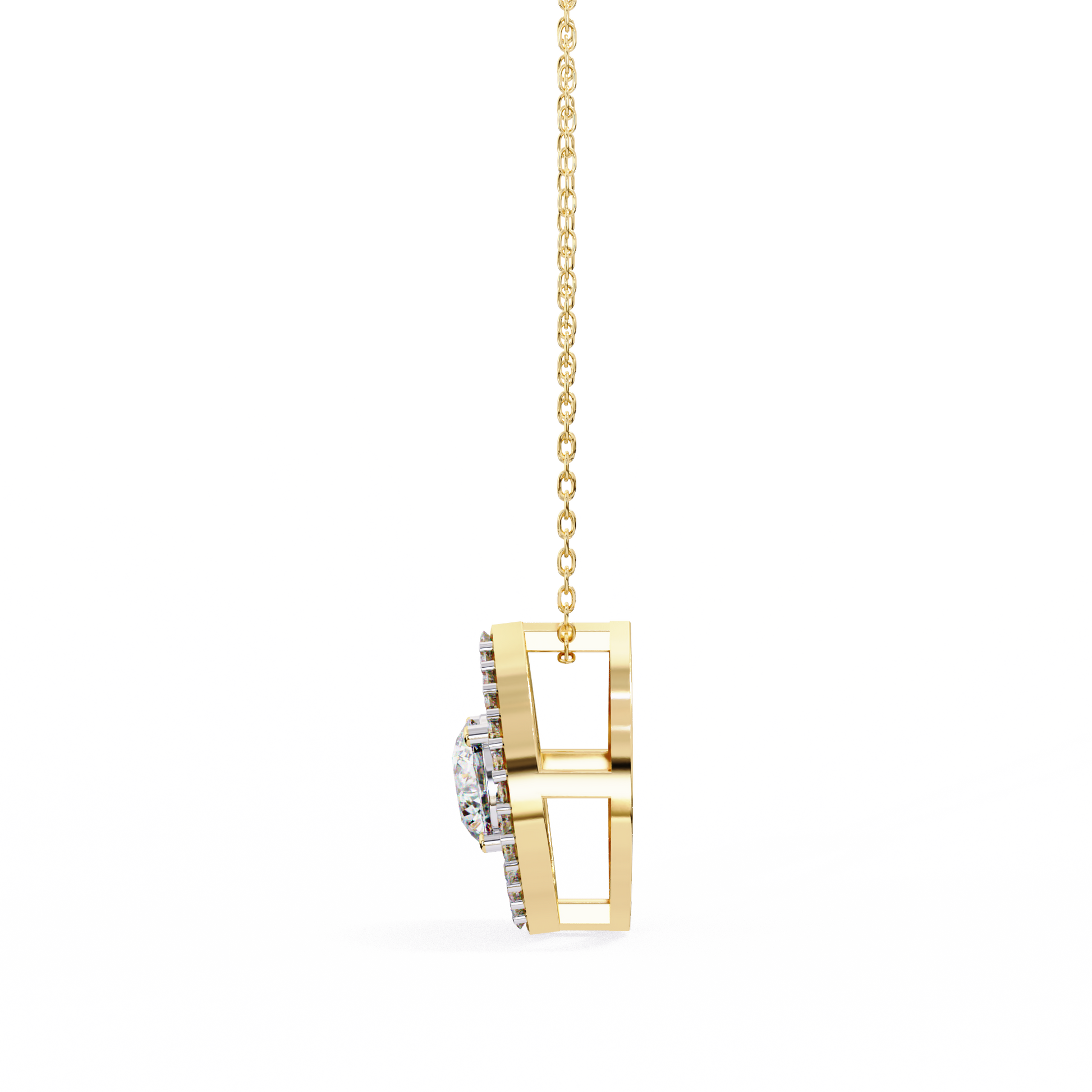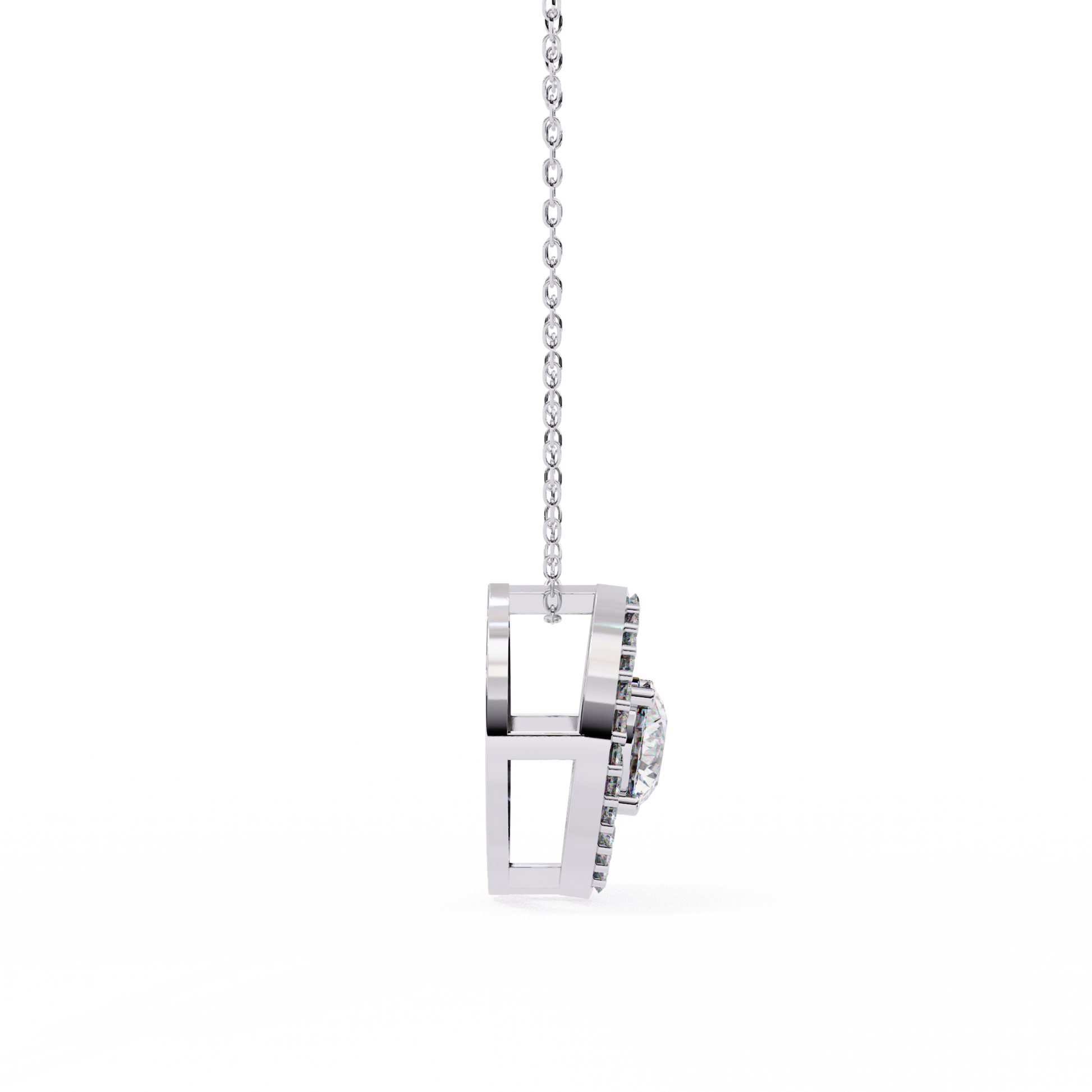The Halo Glint pendant features a central round lab-grown diamond surrounded by a cluster of smaller stones, creating a soft and radiant halo effect. Designed for everyday brilliance, this pendant combines elegance with a timeless shimmer.