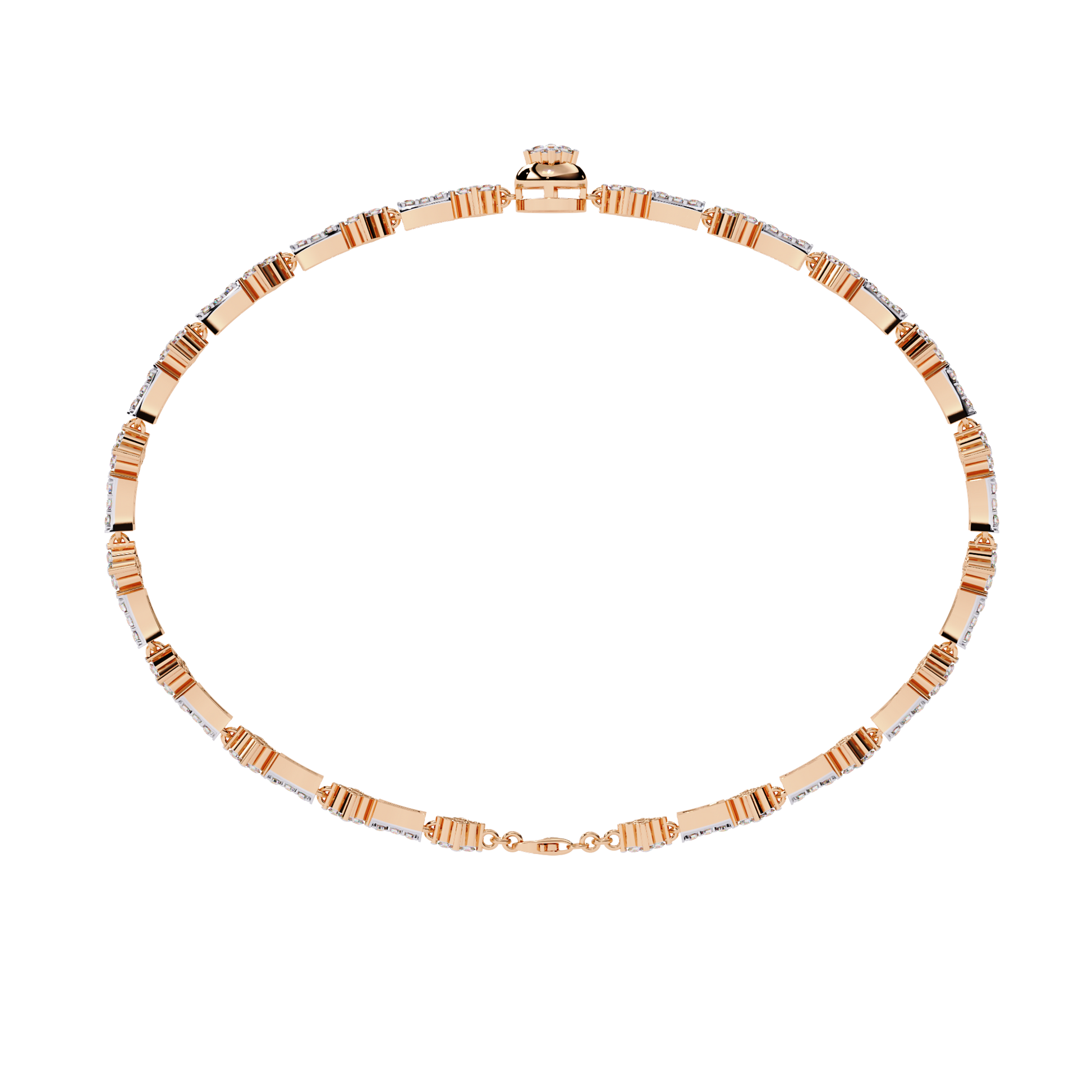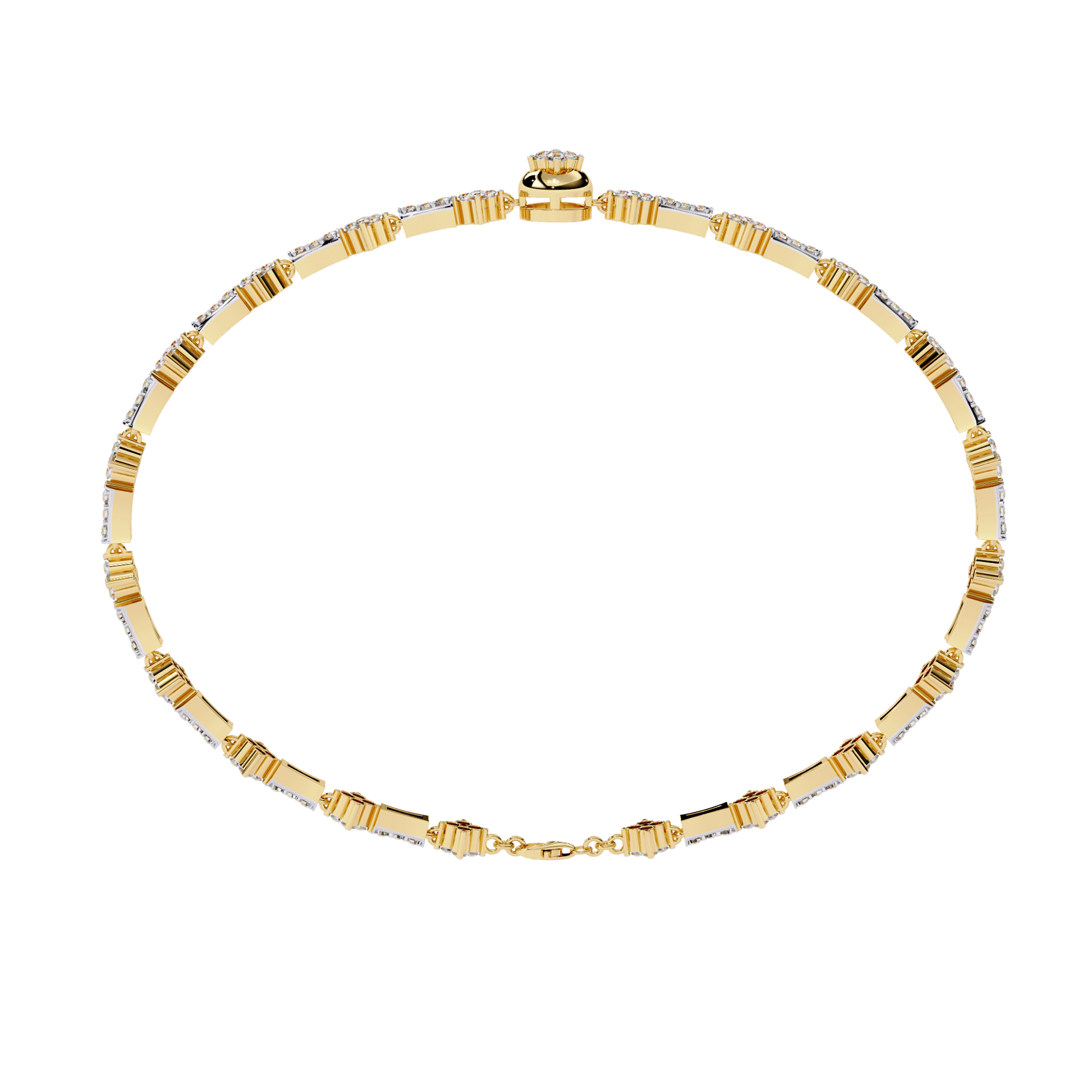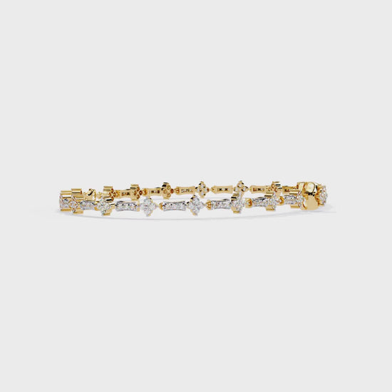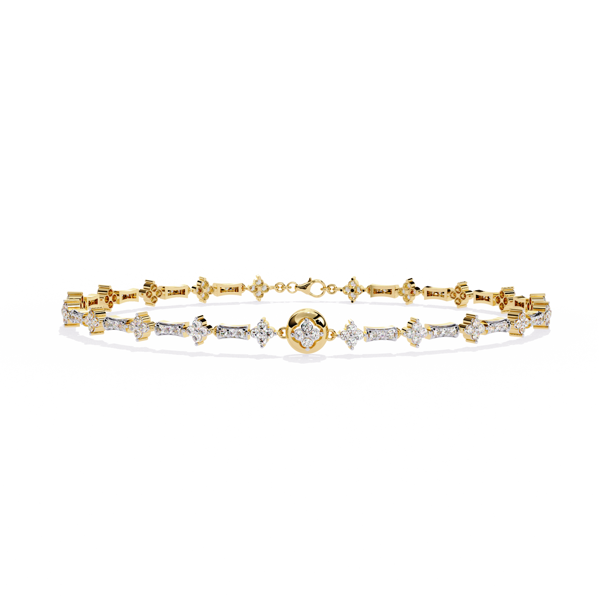 This intricately crafted bracelet features alternating floral-inspired motifs and bar segments adorned with lab-grown diamonds. Set in polished 14K gold, its regal pattern balances old-world charm with contemporary finesse—perfect for those who value heritage in every detail.