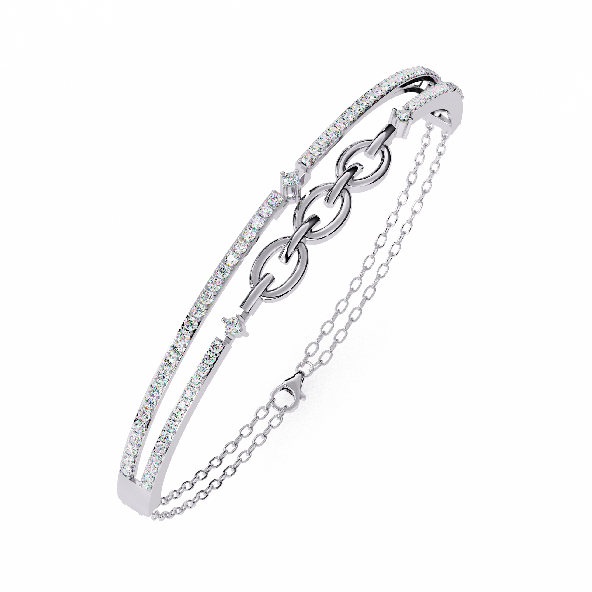 The Interlink Grace bracelet draws its charm from an elegant central chain link motif, flanked by dual pavé-set rows of brilliant lab-grown diamonds. With 77 precisely arranged diamonds totaling 0.98 carats, this modern piece is a sleek representation of unity and strength—effortlessly stylish for both everyday luxury and elevated occasions.
