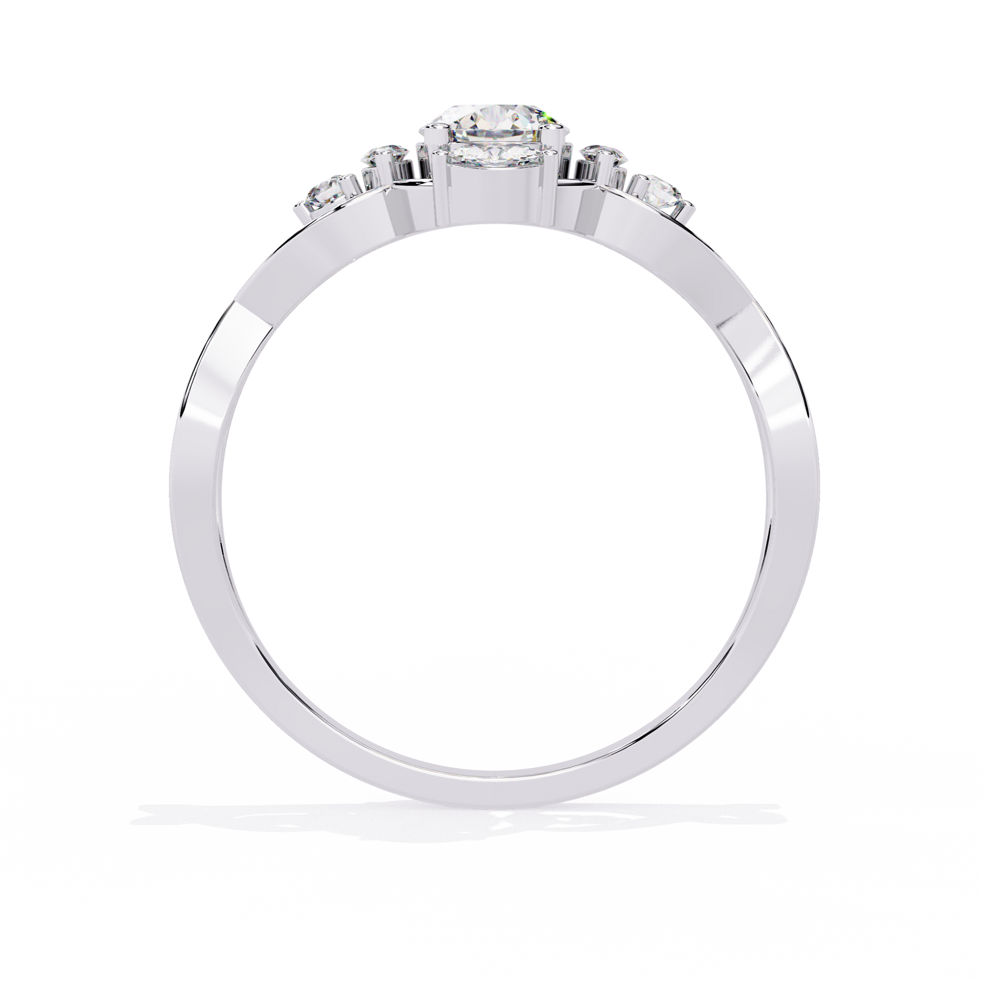 The Intertwined Grace ring features a radiant 4.5 mm lab-grown center diamond, flanked by delicate marquise accents and a gracefully twisted shank. The floral symmetry paired with the airy, open goldwork gives this piece a poetic silhouette.