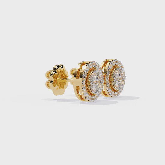 Lumière Crest – Princess & Marquise Diamond Halo Studs in 14K Gold
