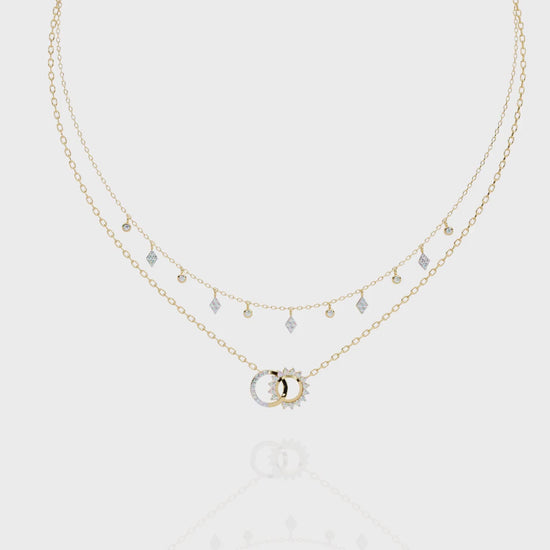 Lunar Link – Dual Charm Diamond Necklace in 14K Gold