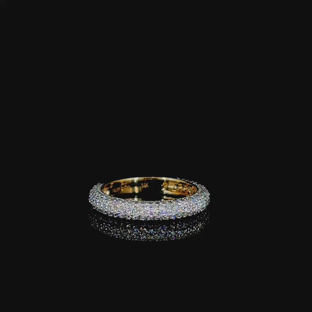 Refined and radiant, the Lyra Thin ring features 191 round lab-grown diamonds totaling 1.17 carats, handset in a continuous circle around a slim 14K yellow gold band. Ideal for stacking or wearing solo, this eternity ring brings subtle brilliance with everyday elegance.