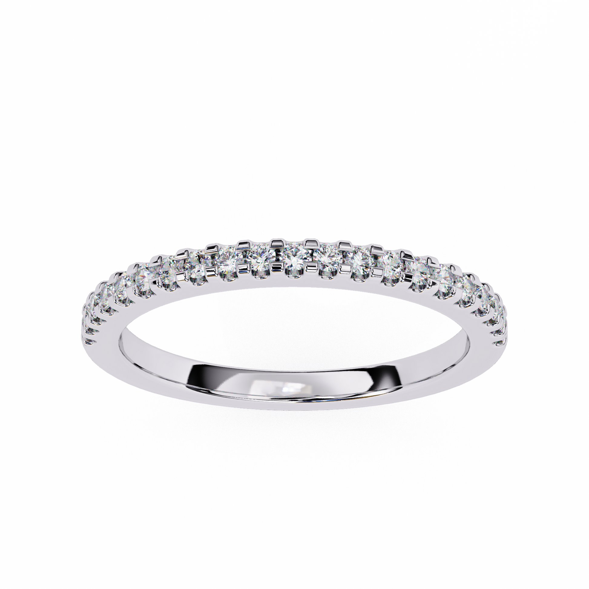 The Lyric Band blends modern symmetry with classic sparkle, showcasing a sequence of round lab-grown diamonds set in alternating sizes. This ring is a refined stacking essential—delicate enough for layering yet luminous enough to wear solo.
