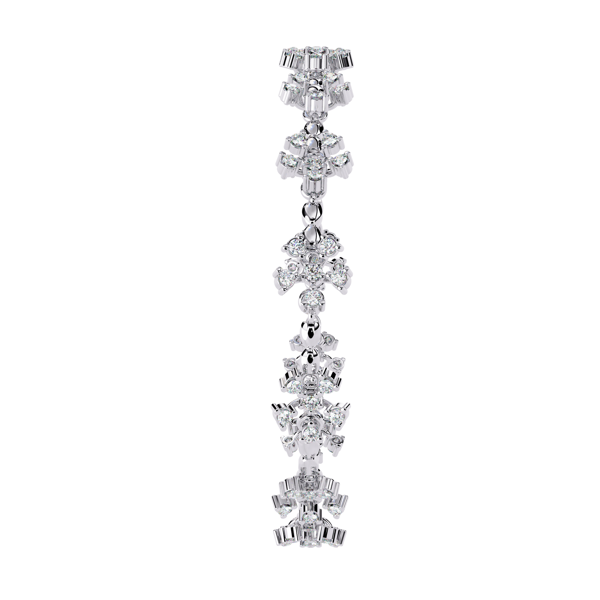 The Ornate Fleur bracelet weaves together delicate floral motifs, set with 103 round lab-grown diamonds in an elegant 7.5-inch design. Its intricately linked flowers create a rhythm of brilliance across the wrist, blending vintage inspiration with modern craftsmanship. A luxurious touch for special occasions or refined everyday elegance.