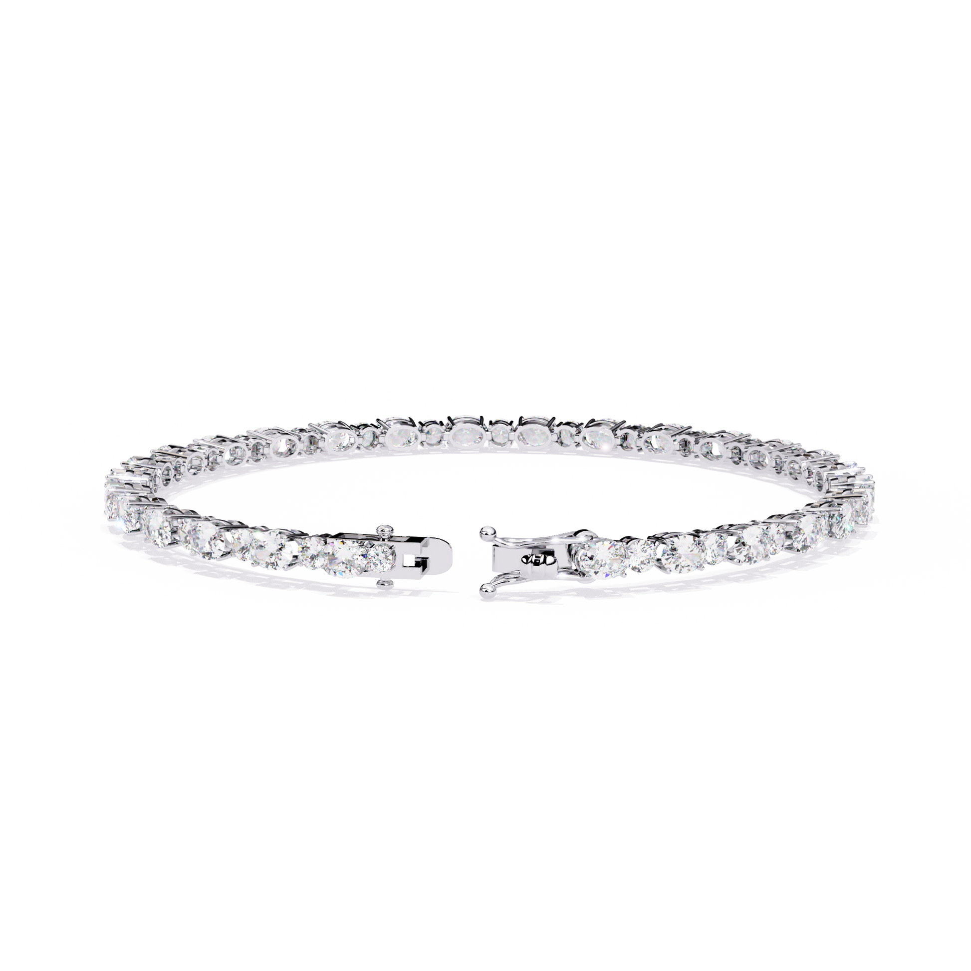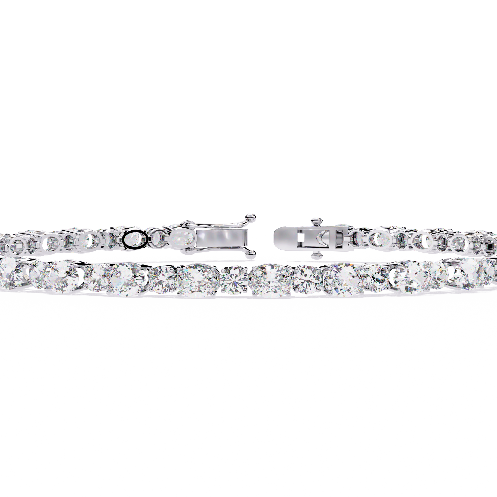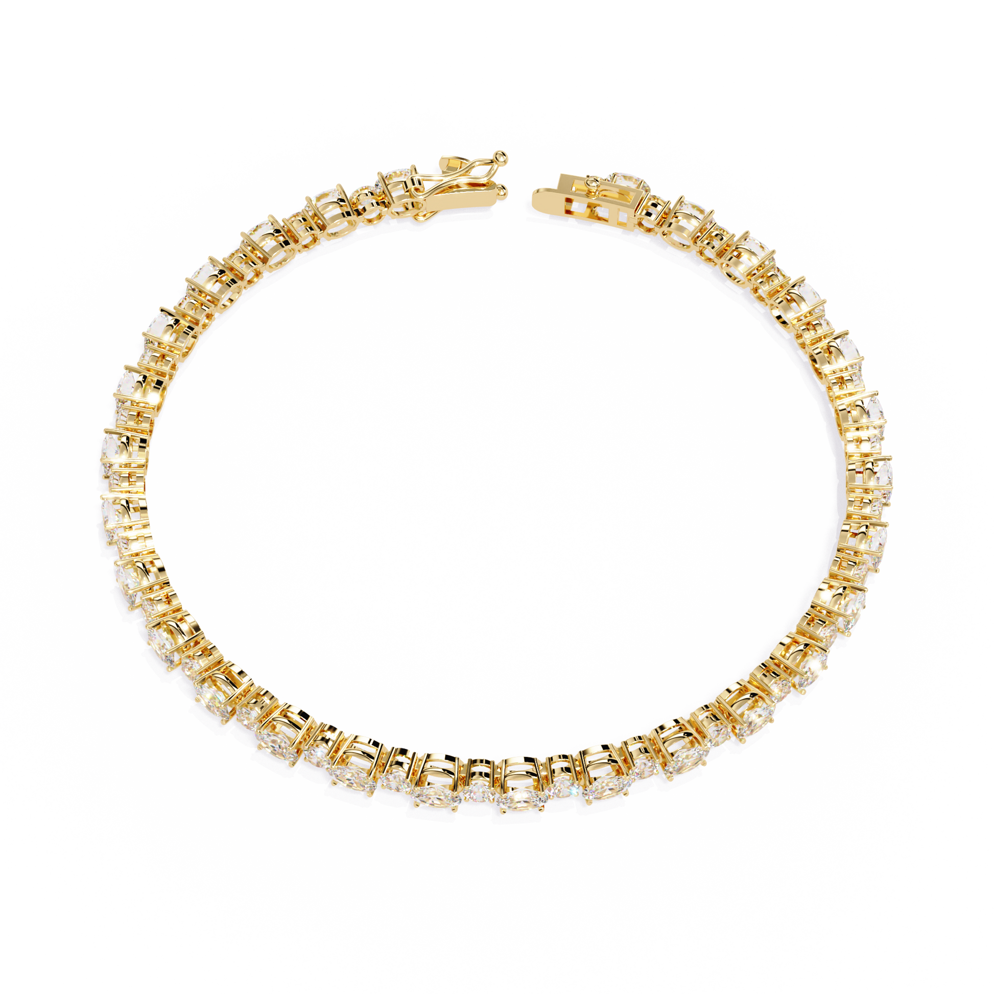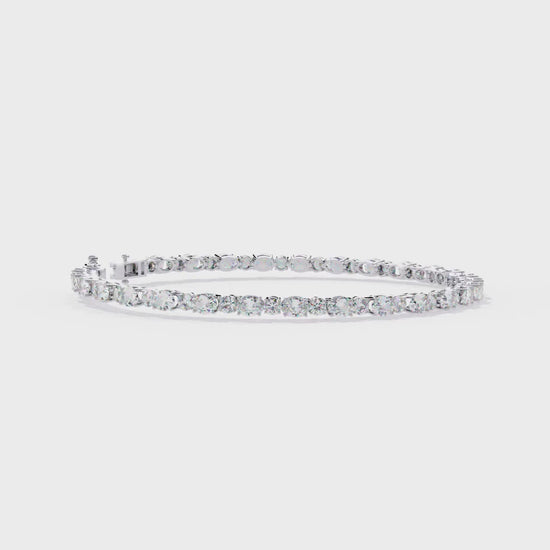 The Oval Linea bracelet features a continuous stream of brilliance with 26 lab-grown diamonds precisely set in a 7.5-inch tennis-style silhouette. Each 4x3 mm oval-cut stone sparkles with grown brilliance, delivering 5.2 carats of clean, modern elegance. Secured with a refined clasp and crafted in 14K solid gold, this piece is designed to embody understated luxury and timeless grace.