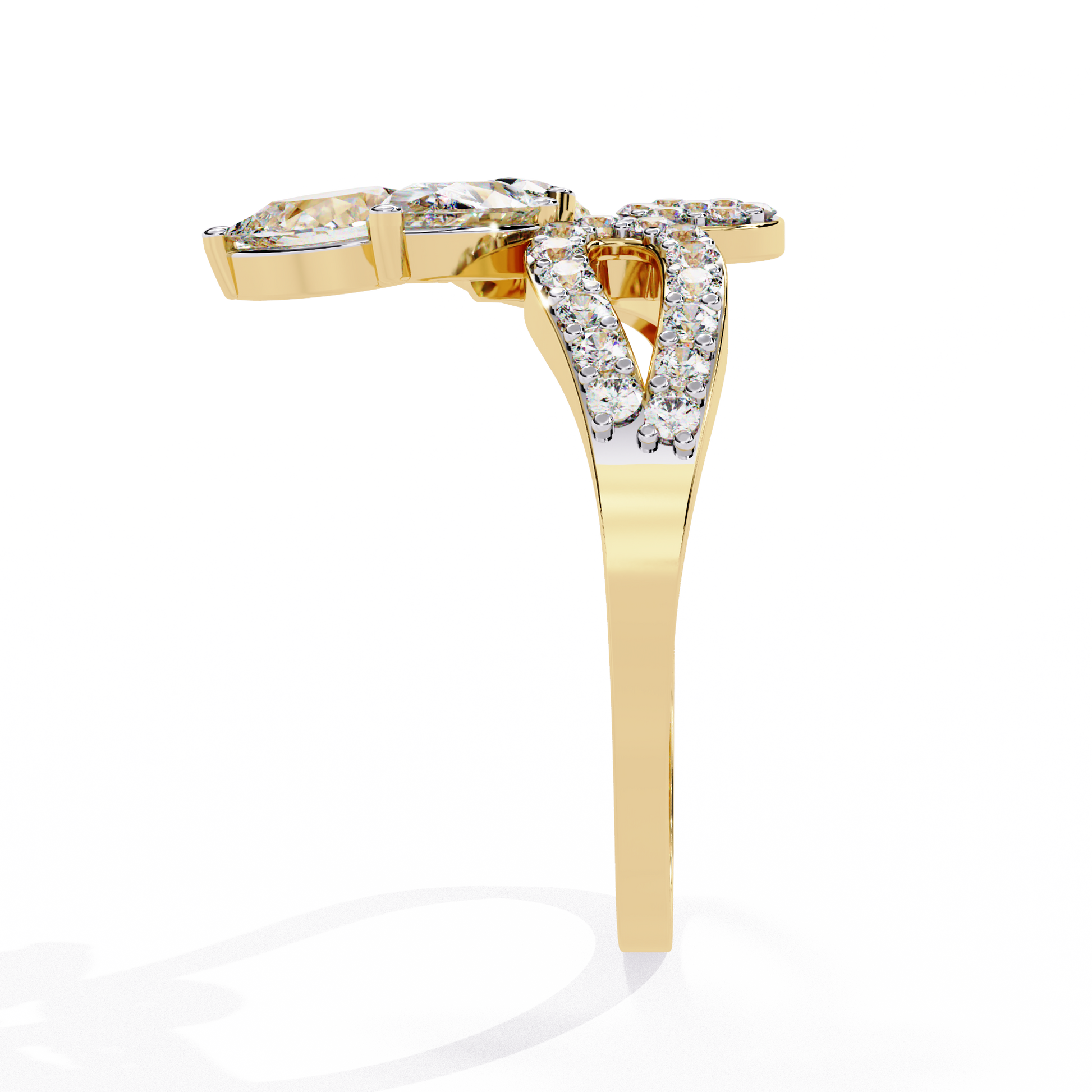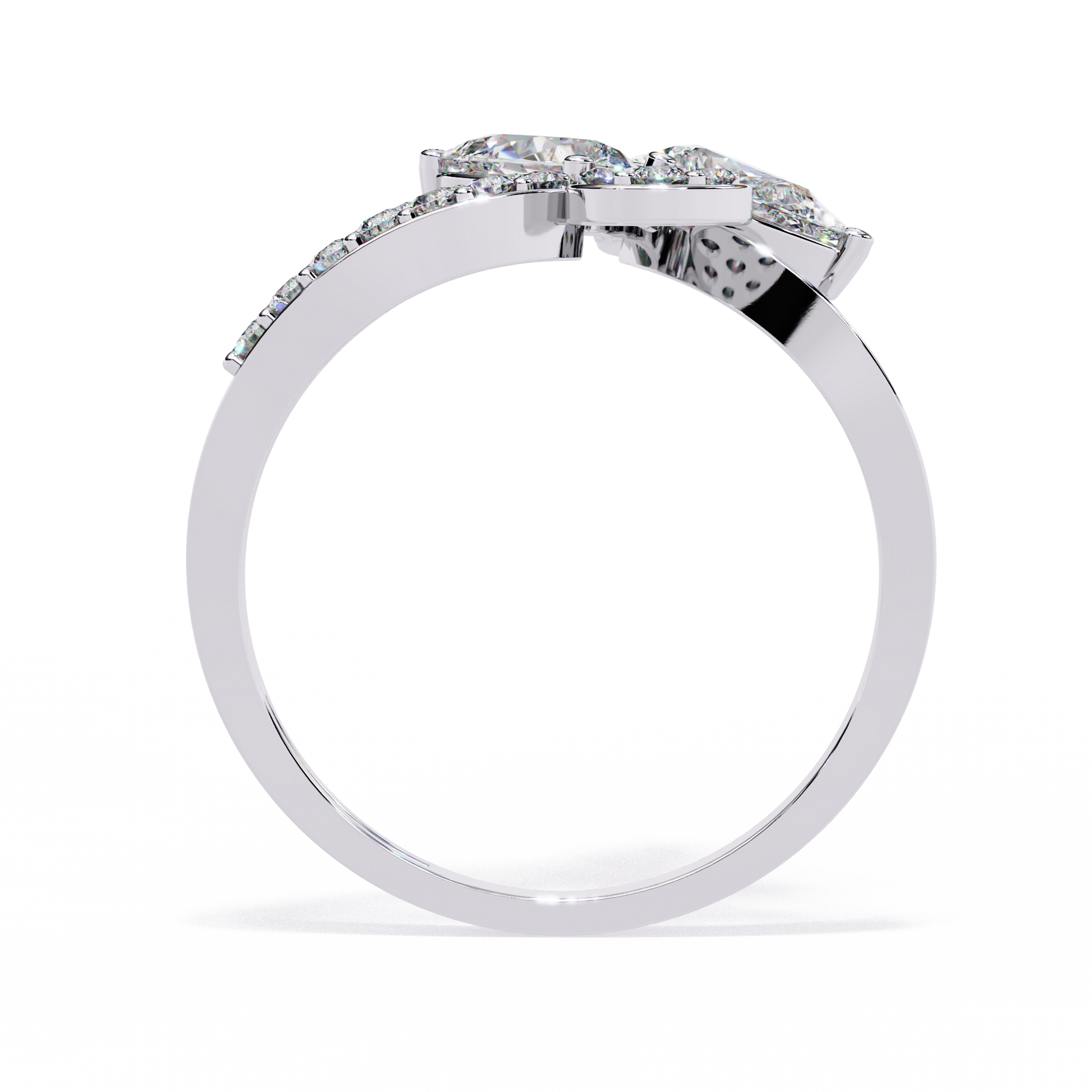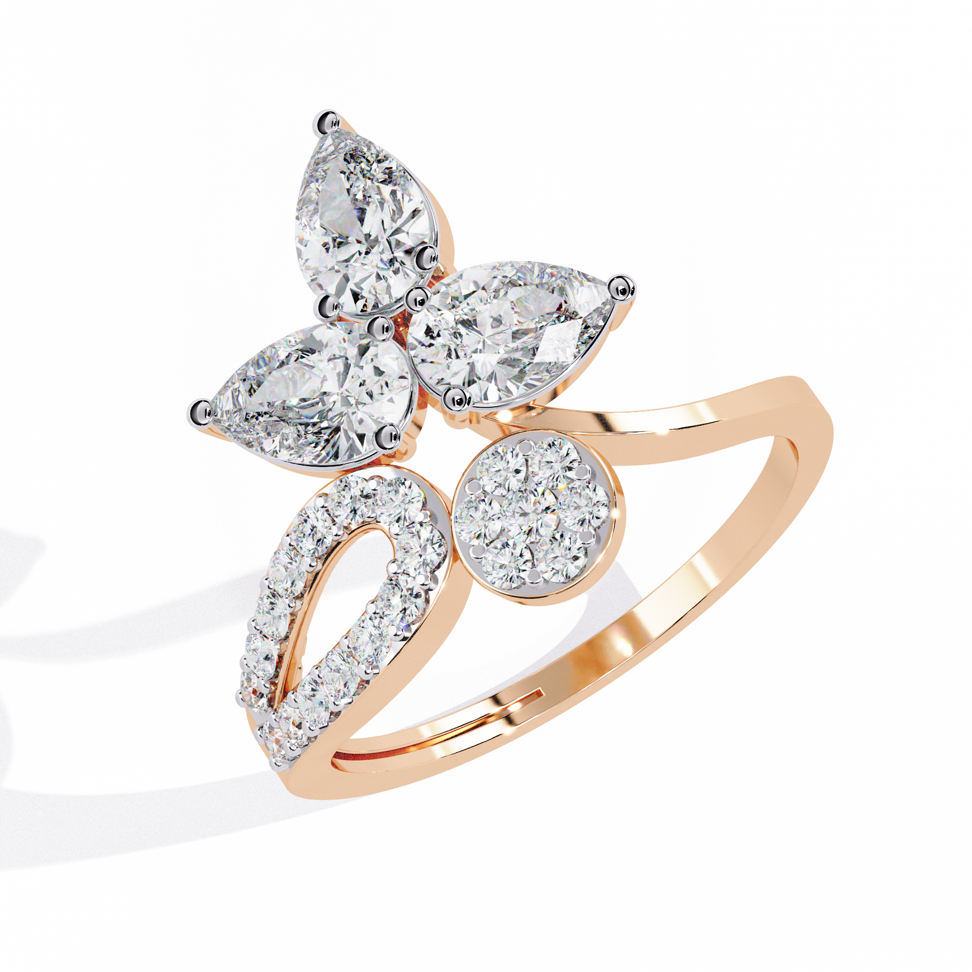 The Petal Cluster ring captures the lightness of nature with a refined, modern twist. Three pear-shaped lab-grown diamonds form a blooming floral silhouette, complemented by a round pavé-set cluster at the base and a graceful loop band paved with round diamonds. The composition feels organic and expressive, like a petal frozen mid-bloom.