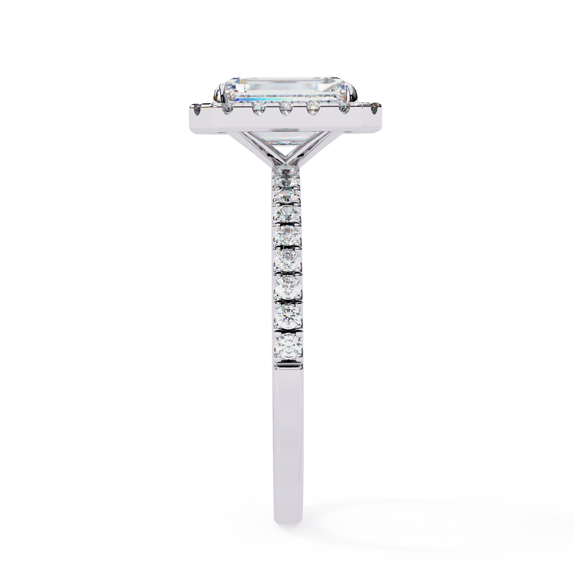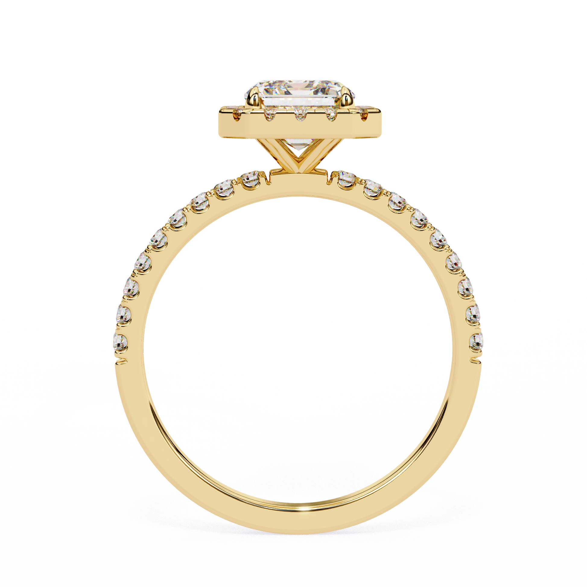 The Radiance Arc ring showcases a radiant-cut lab-grown diamond surrounded by round diamonds arranged in a rising fan. With architectural symmetry and upward flow, this piece reflects a bold elegance—designed to frame brilliance with dynamic movement.