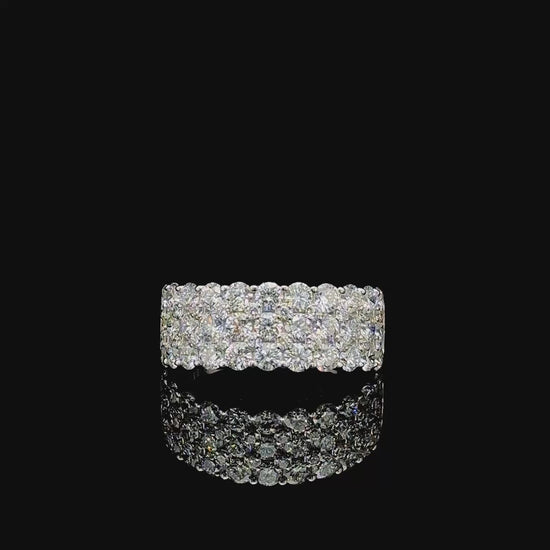 This bold 14K white gold band is adorned with 53 round lab-grown diamonds totaling 2.20 carats. With its wide silhouette and striking pave layout, the Radiant Crest ring radiates confidence and brilliance—ideal for those who prefer standout luxury.