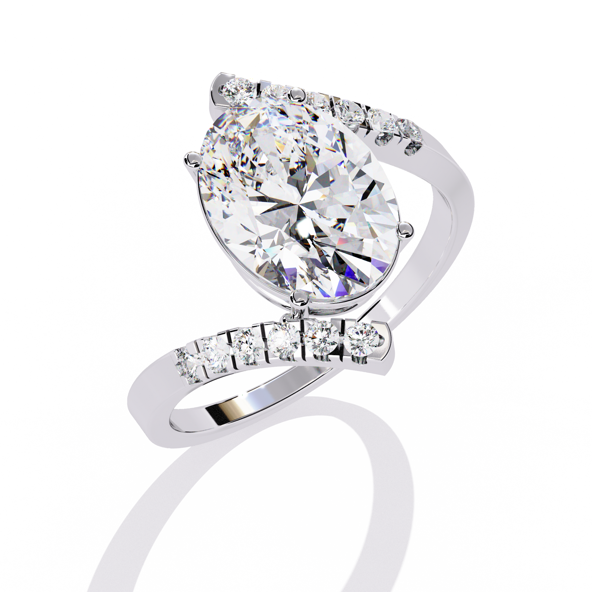 The Radiant Sweep ring features a commanding 11x9 mm oval lab-grown diamond set in a sleek, modern silhouette. Its uniquely angled pavé band adds motion and brilliance, drawing attention to the 4-carat center stone.