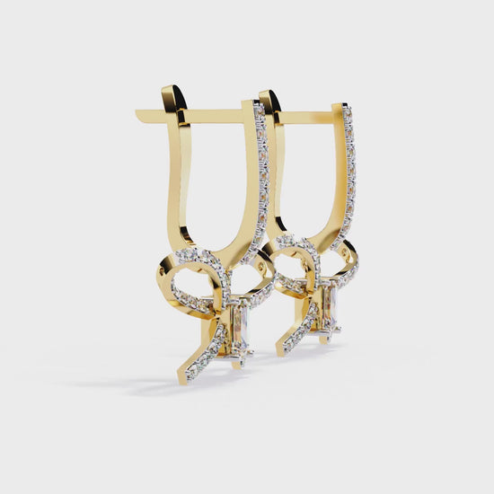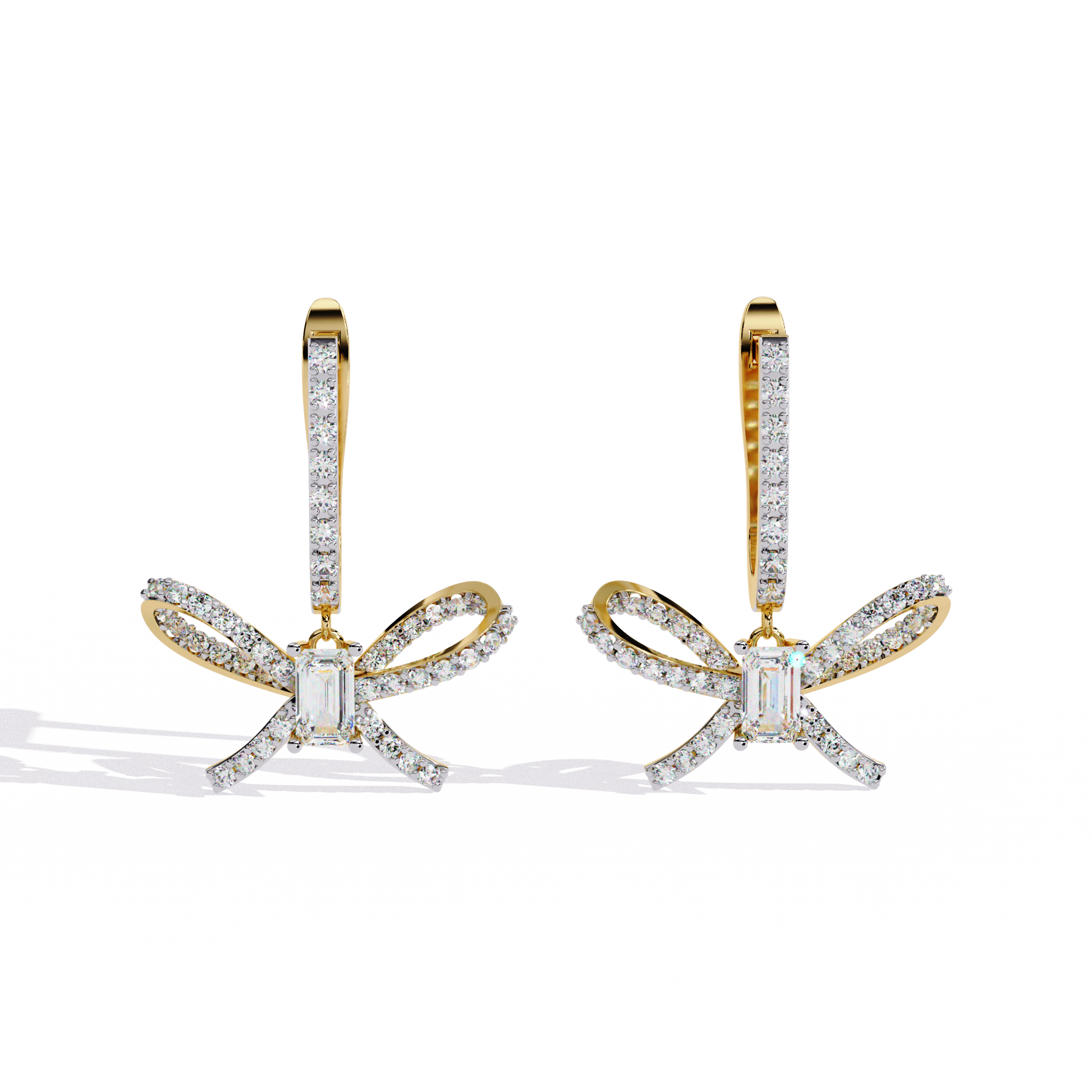Ribbon Grace – Emerald-Cut Diamond Bow Earrings in 14K Gold