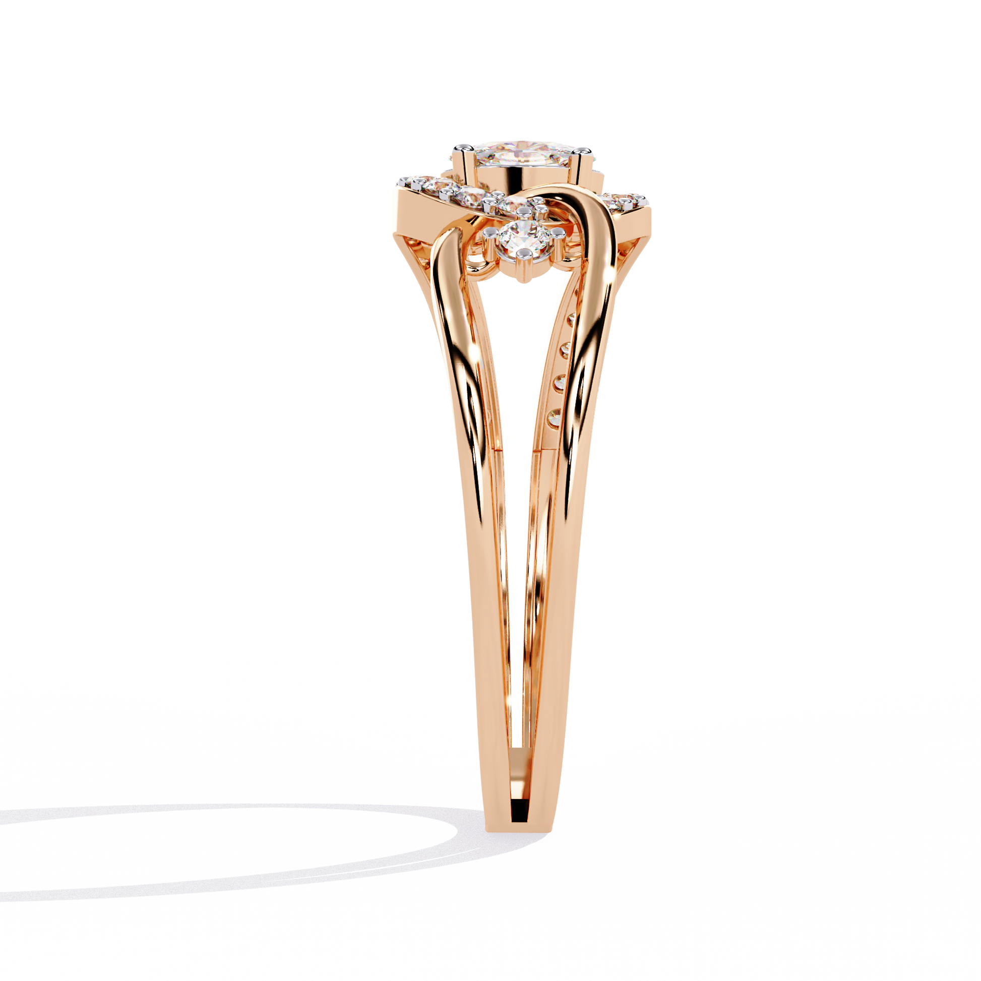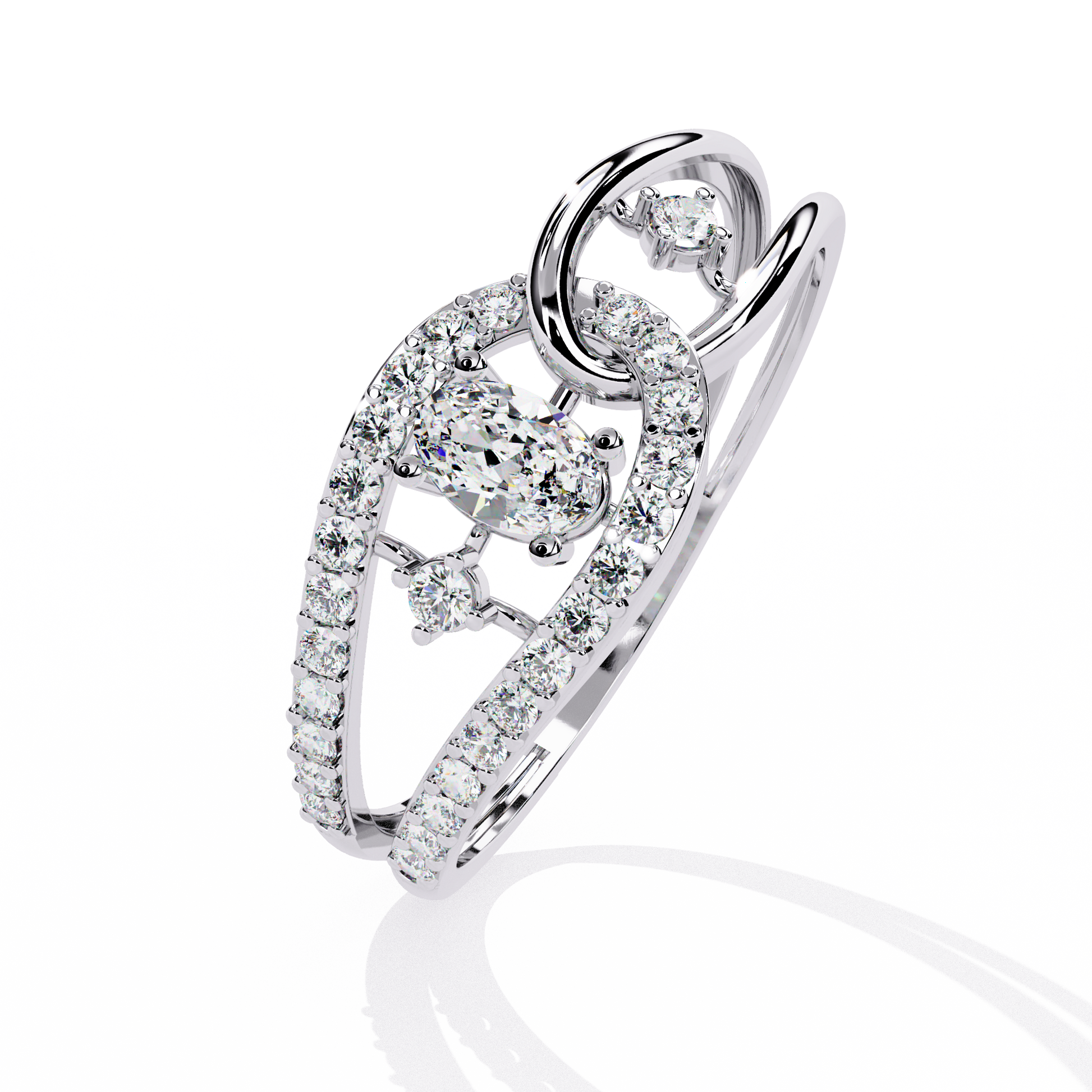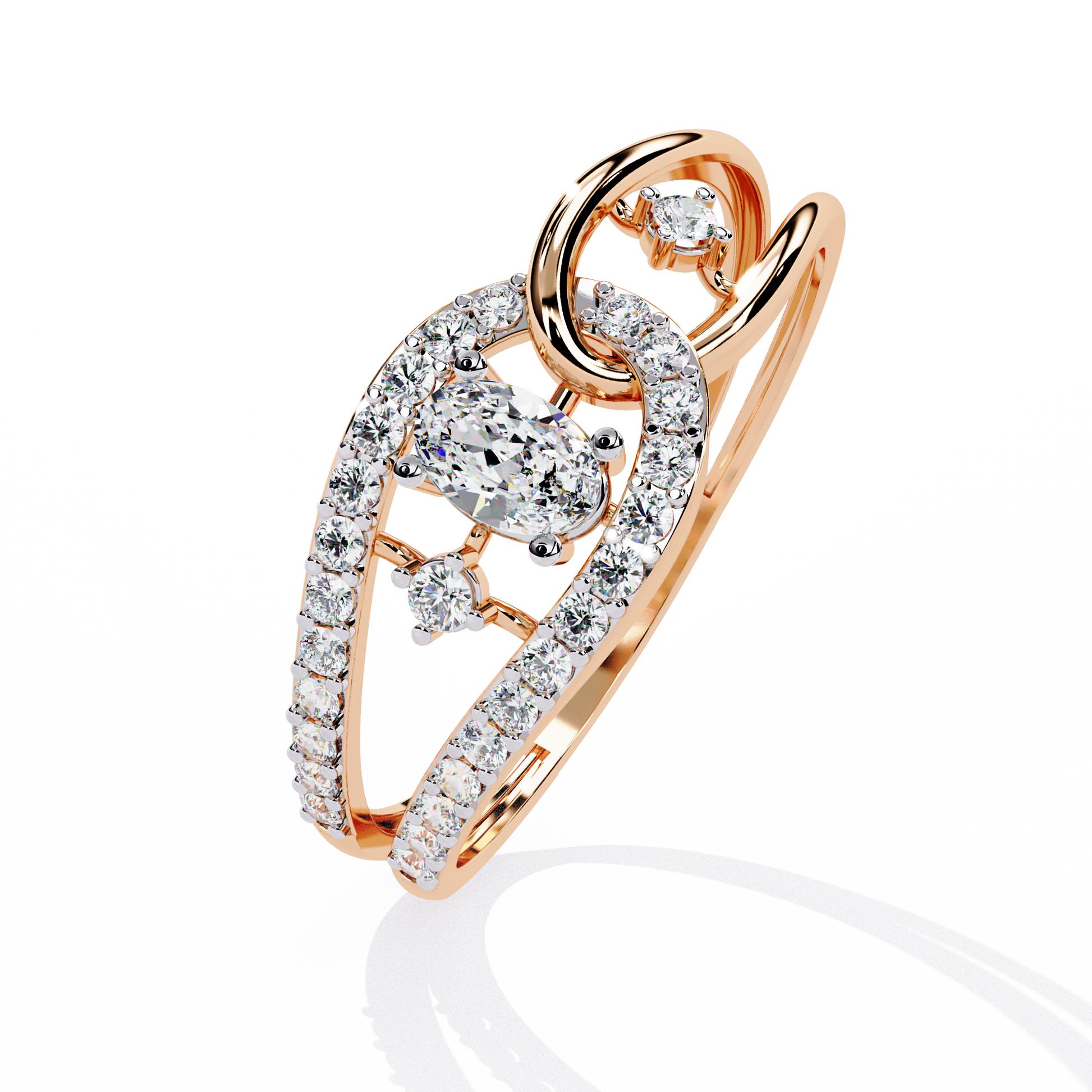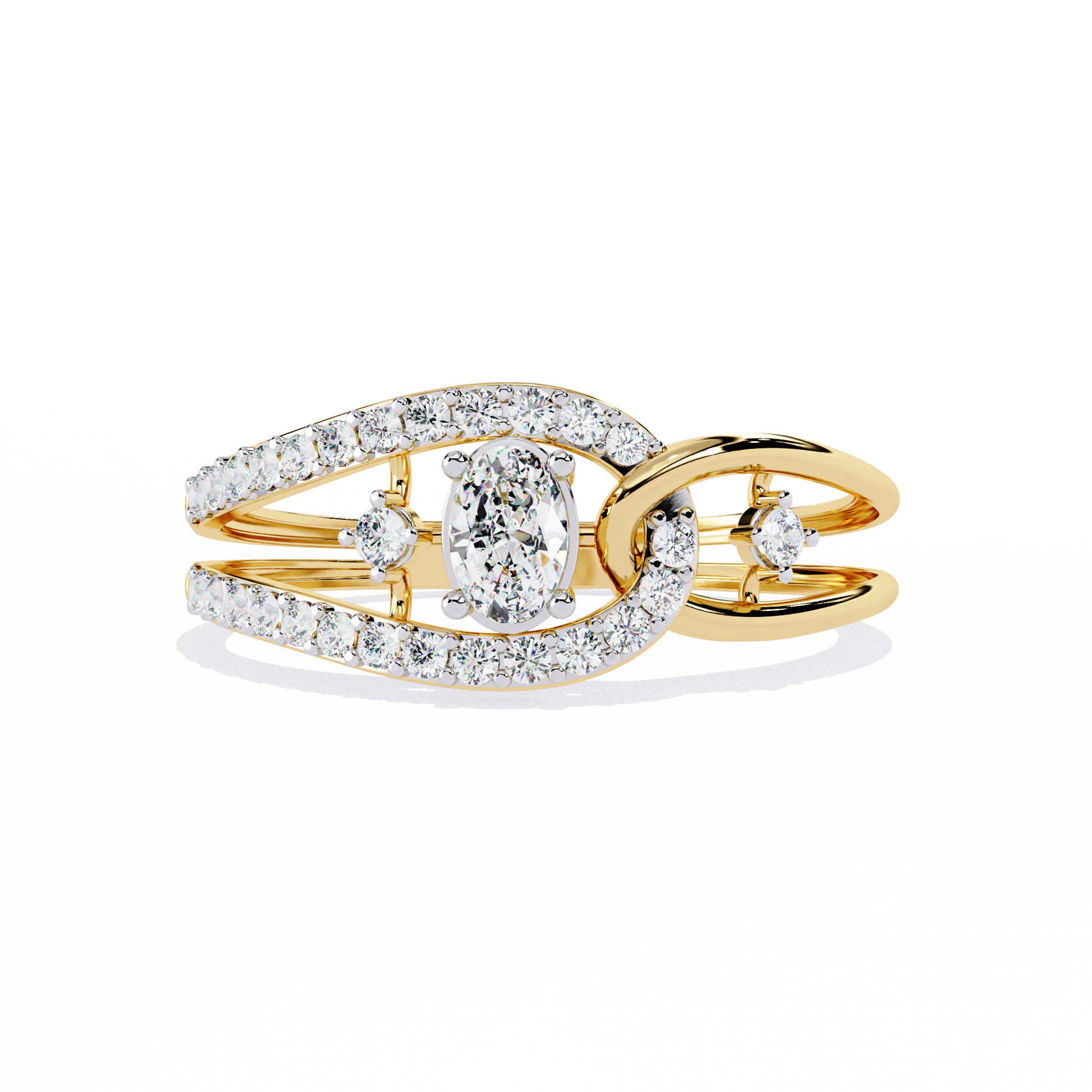 Ribbon Wrap – Oval Diamond Split Band Ring in 14K Gold