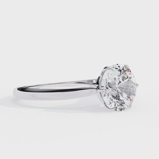 The Round Elevate ring features a bold round lab-grown diamond held in a structured raised bridge setting. The sculpted architecture gives height and emphasis to the center stone, creating a commanding silhouette with refined minimalism.