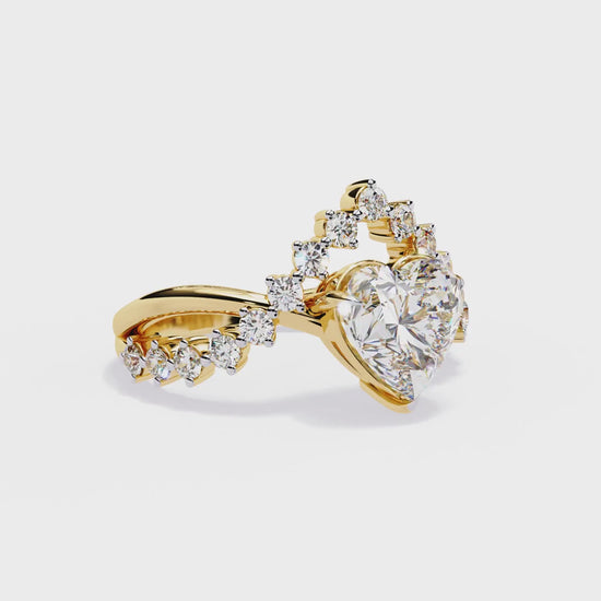 The Royal Amour ring showcases a majestic heart-shaped lab-grown diamond at its center, surrounded by a tiara of brilliant round diamonds that continue along the shank. With its regal symmetry and romantic curves, this ring captures both elegance and emotion in every glance.