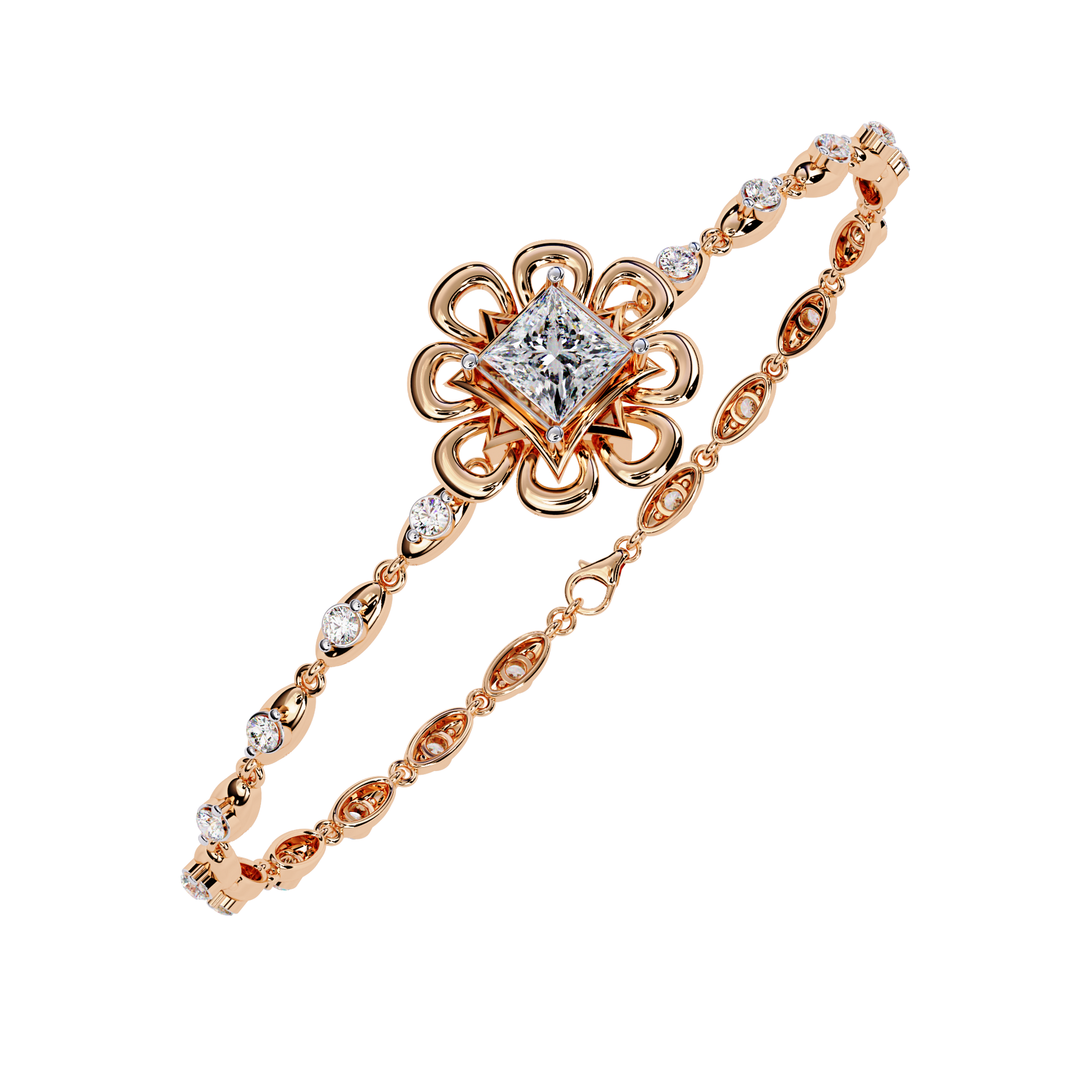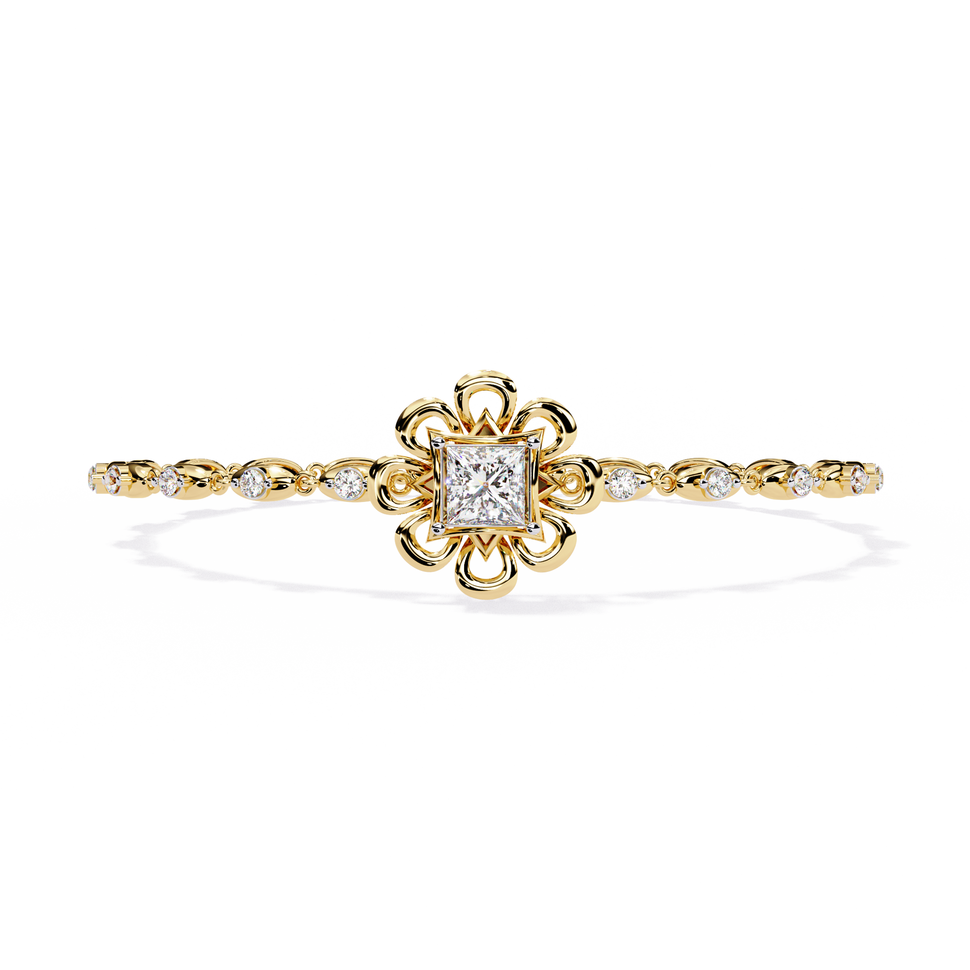 Royal Bloom – Princess Cut Centerpiece Diamond Bracelet in 14K Gold