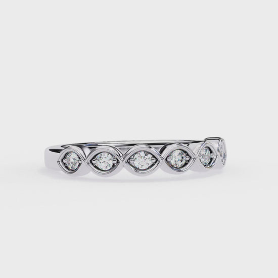 The Sierra Arc ring presents a soft curve of seven round lab-grown diamonds, subtly contoured to complement engagement rings or to stand alone as a minimalist accent. Lightweight and delicate, it’s an effortless piece designed for elegance in motion.