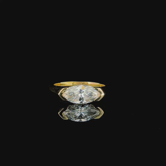 A modern silhouette meets timeless brilliance in this elegant solitaire ring. Featuring a striking marquise-cut diamond seamlessly nestled in a bold gold band, this ring brings a clean, confident energy to your everyday or engagement look. Designed for those who appreciate refined minimalism and powerful statements.