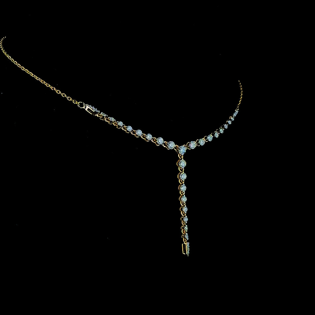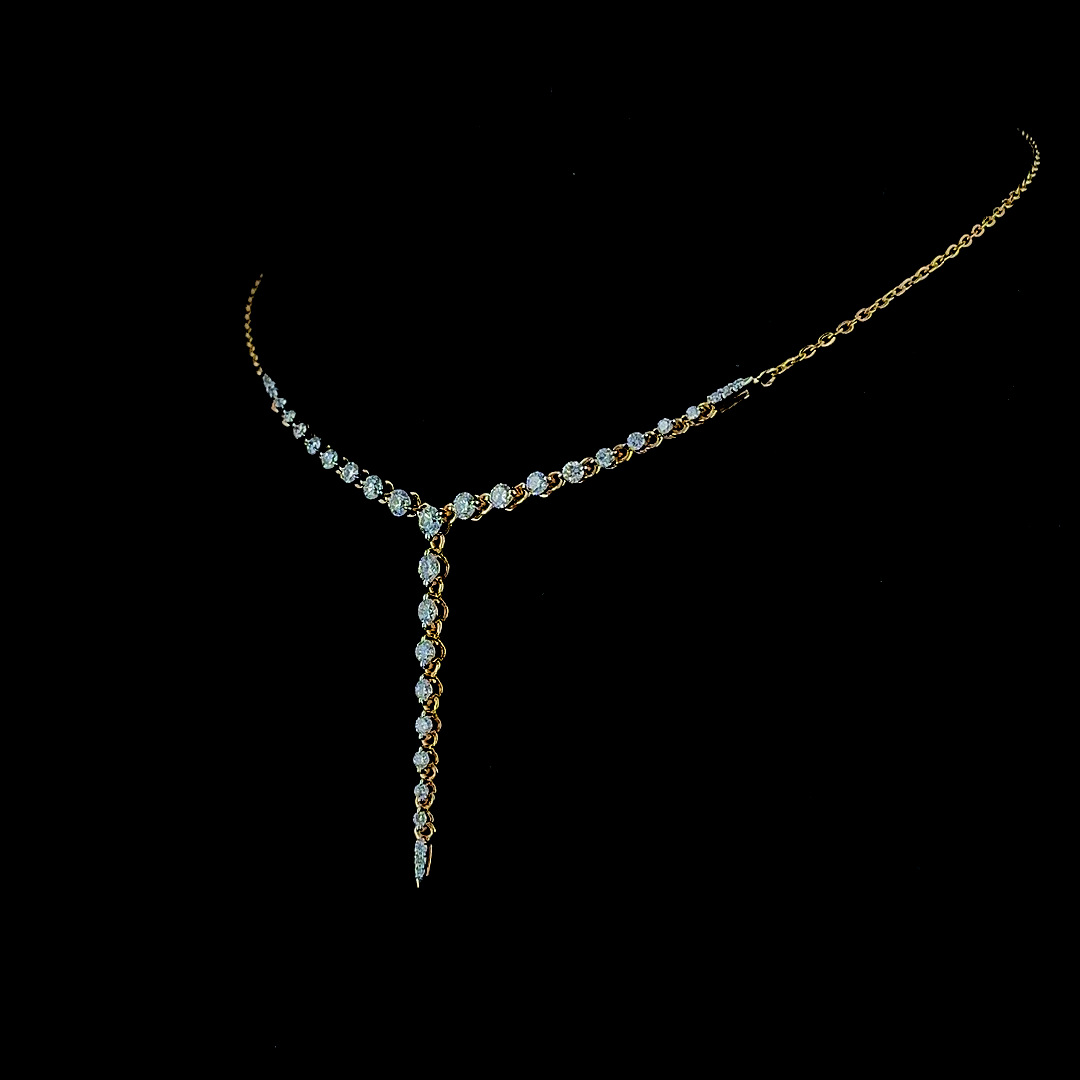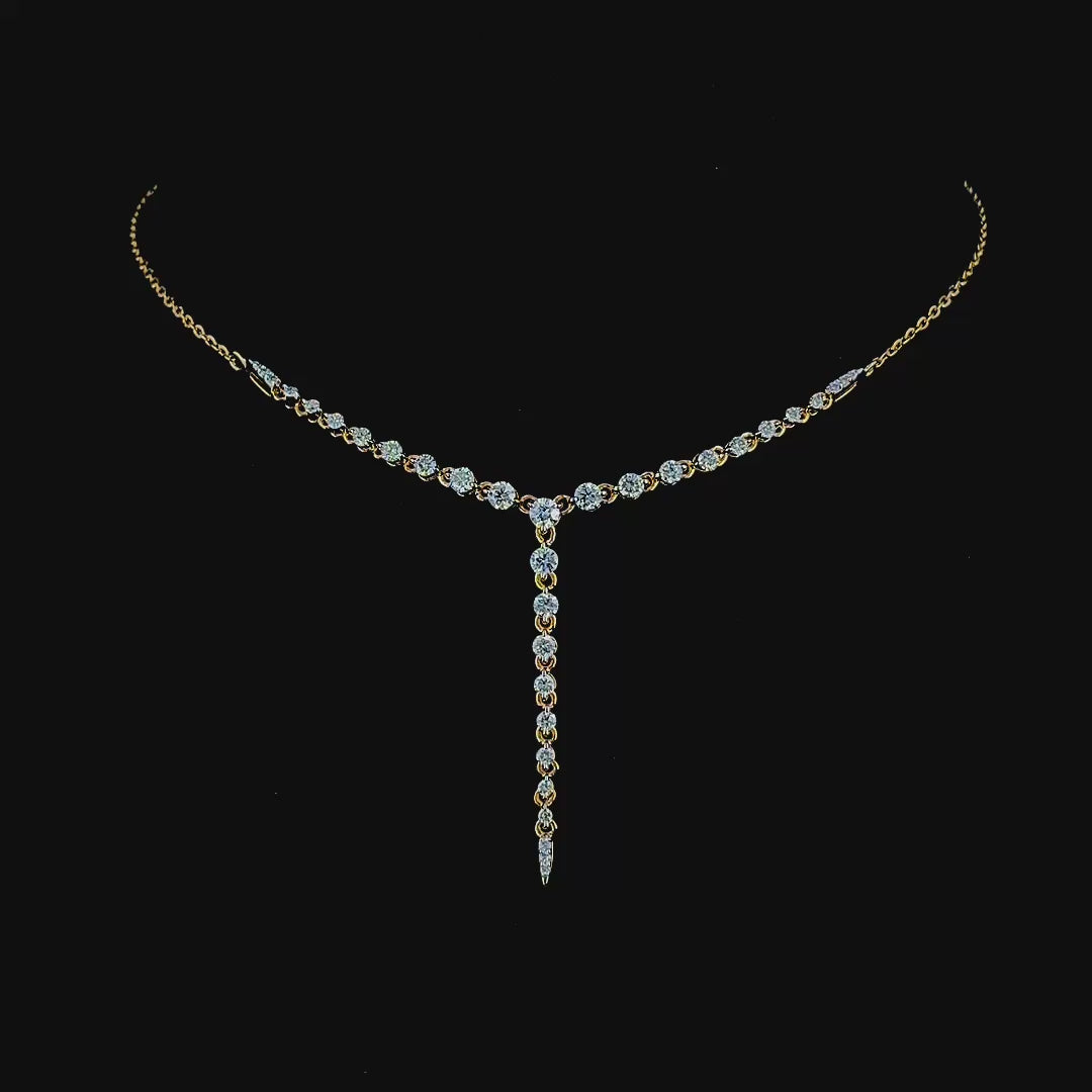 Gracefully designed with a contemporary V silhouette, this 14K yellow gold necklace is set with 34 round lab-grown diamonds totaling 1.067 carats. The gradual tapering of diamond sizes forms a refined curve that flatters the neckline—perfect for layered looks or elegant solos.