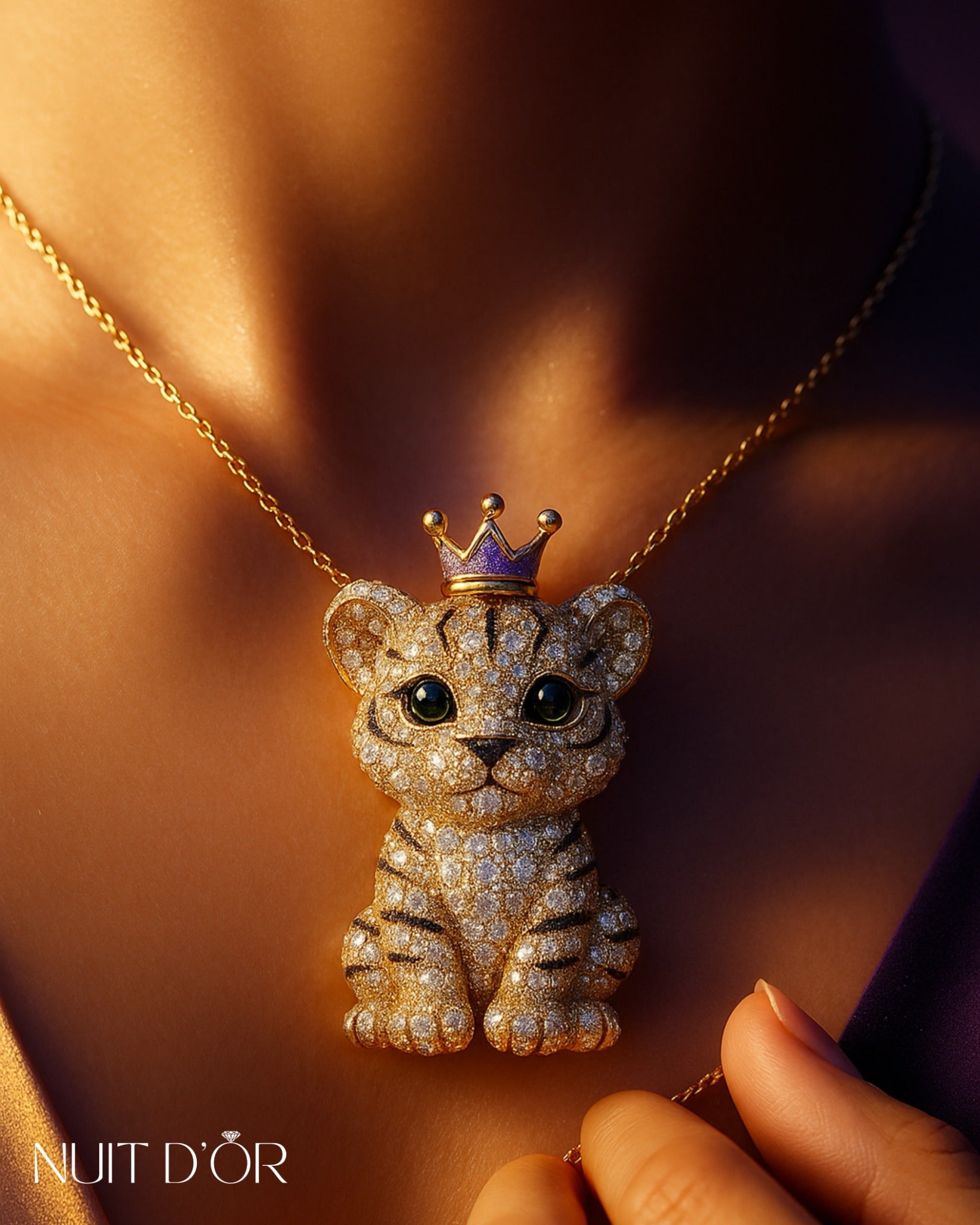 A diamond-studded tiger cub crowned in brilliance — symbolizing courage, royalty, and untamed beauty.